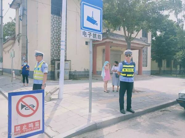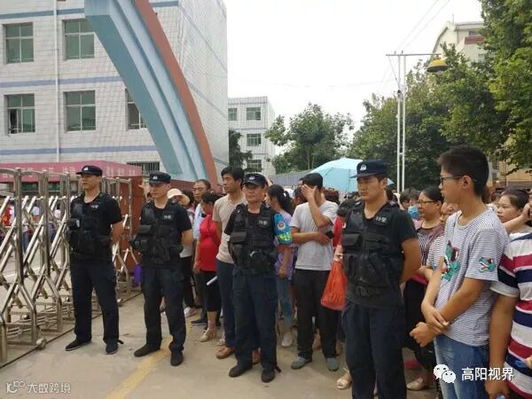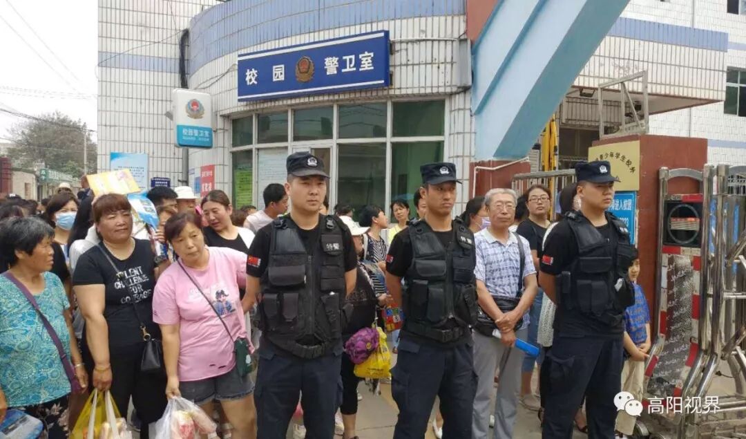 高阳县交警队和公安局齐上阵,给考生们加油助威。