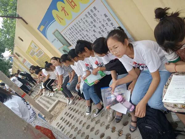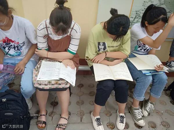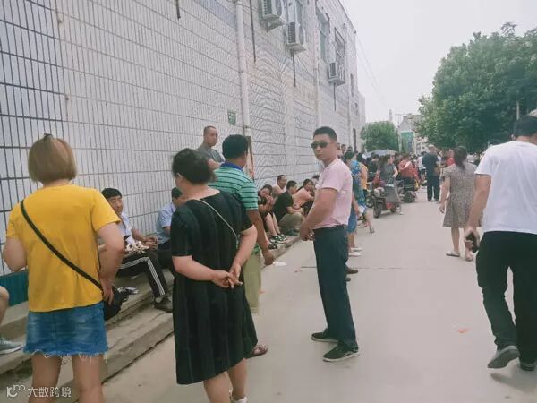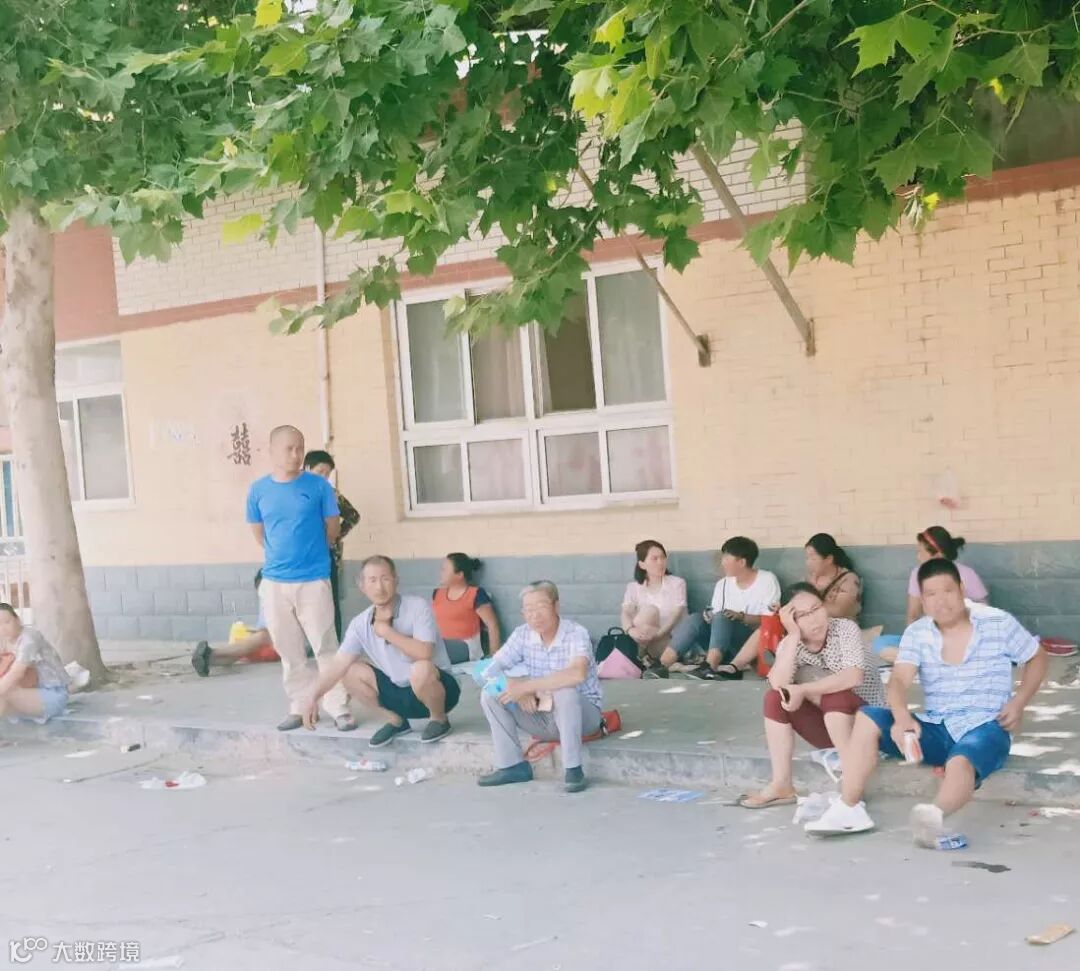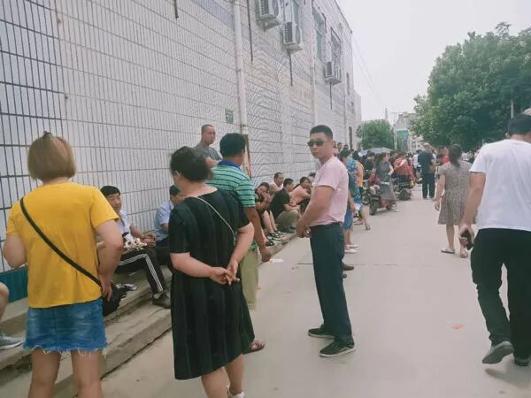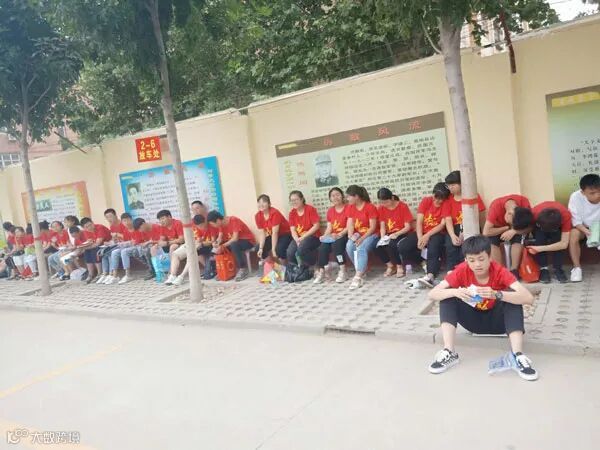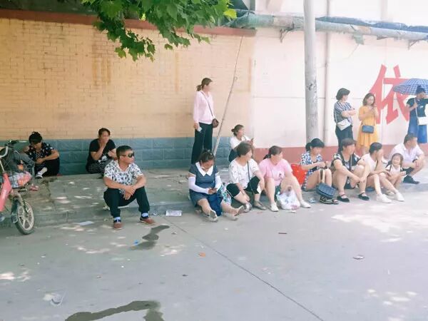今天是中考第二天,上午八点钟,考生们已经全部进入学校,校门外的,是坐在地面上的家长们,整整一排。