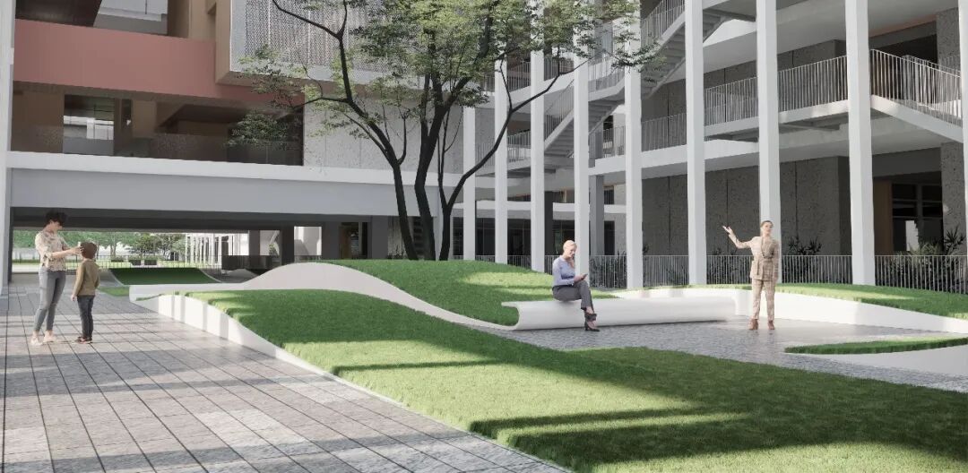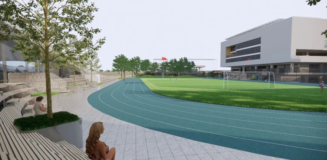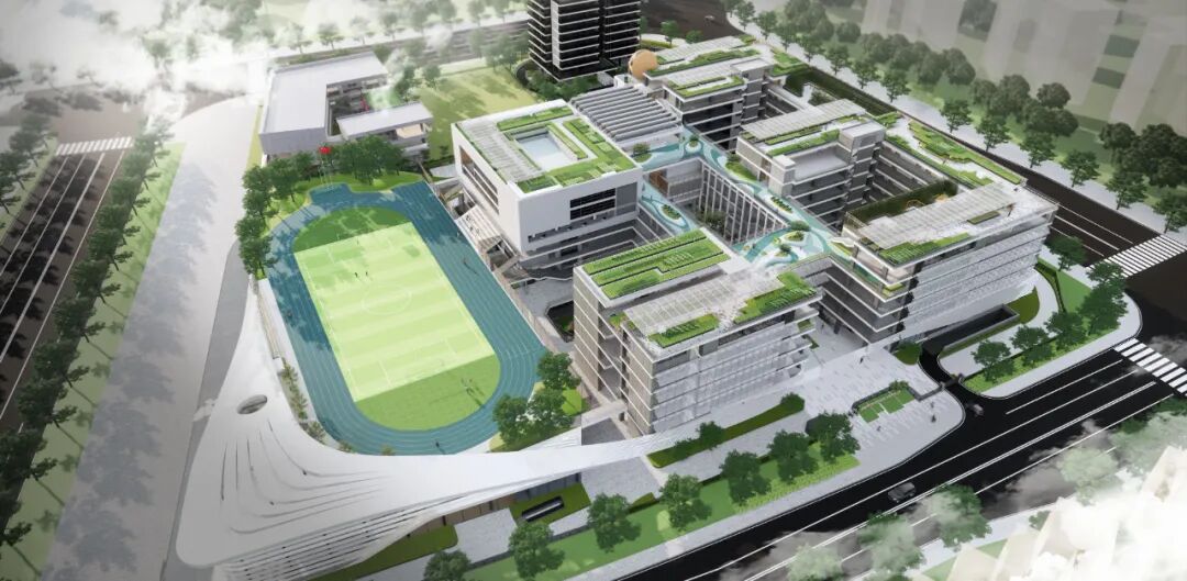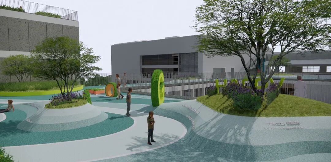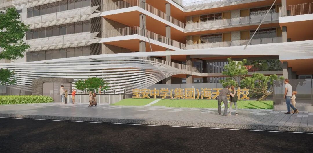 项目是极具深圳特色的高密度垂直式校园,景观配合建筑打造立体开放、个性多元的学生自主学习活动空间,充分尊重其作为独立个体展开个性化空间设计。设计以“成长的海洋”为主题,提炼海浪形式,延续城市肌理,通过流动感与周边环境实现统一和对话,营造安全的、适合学习的、富有乐趣的校园景观氛围,融入大湾区城市系统打造符合名校气质、有文化内涵的艺术生态型校园。