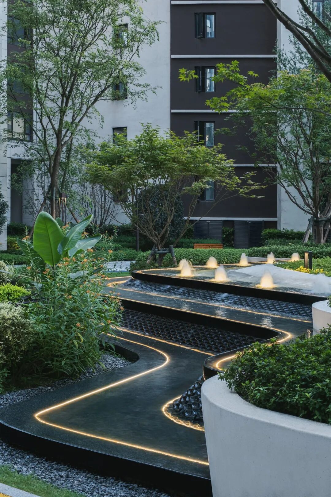 中海·天府麓湾项目中,景观设计重在表达轻奢精致的质感,希尔景观团队设计采用前庭后院的方式,还原精致生态的生活轨迹与时序,以几大景观亮点,打造出现代时尚、休闲宜居、精致乐享的天府麓湾“森”活空间。项目始终从人居使用出发,有效利用大中庭空间,巧妙拓展空间的使用功能,多元化生态设计,塑造城市昭示面的同时营造出专属的私享生活空间,令住户享受名至实归的品质天府生活。