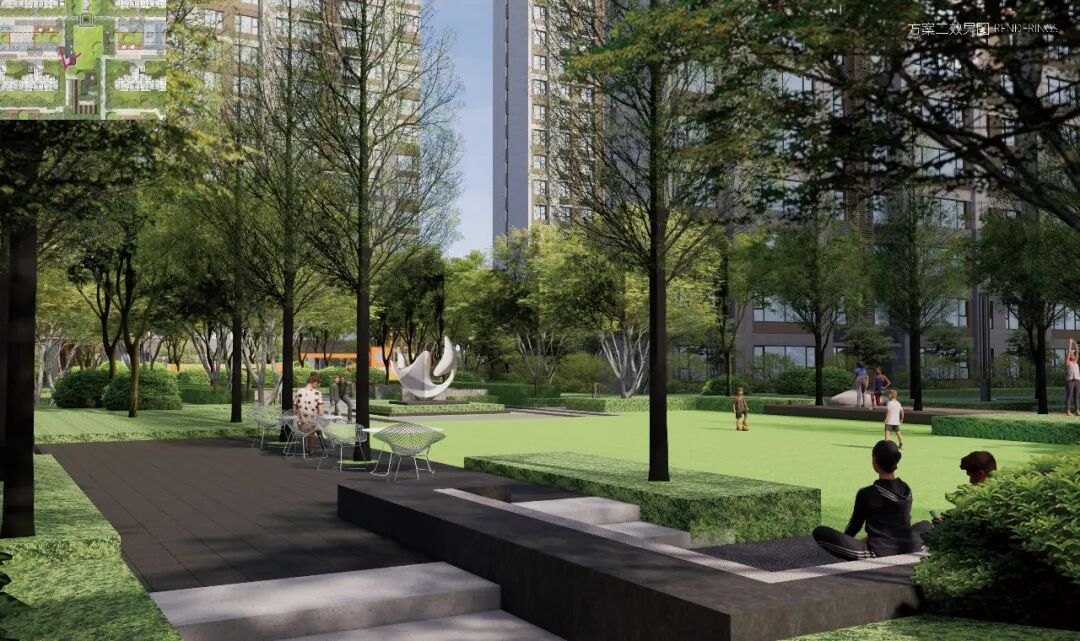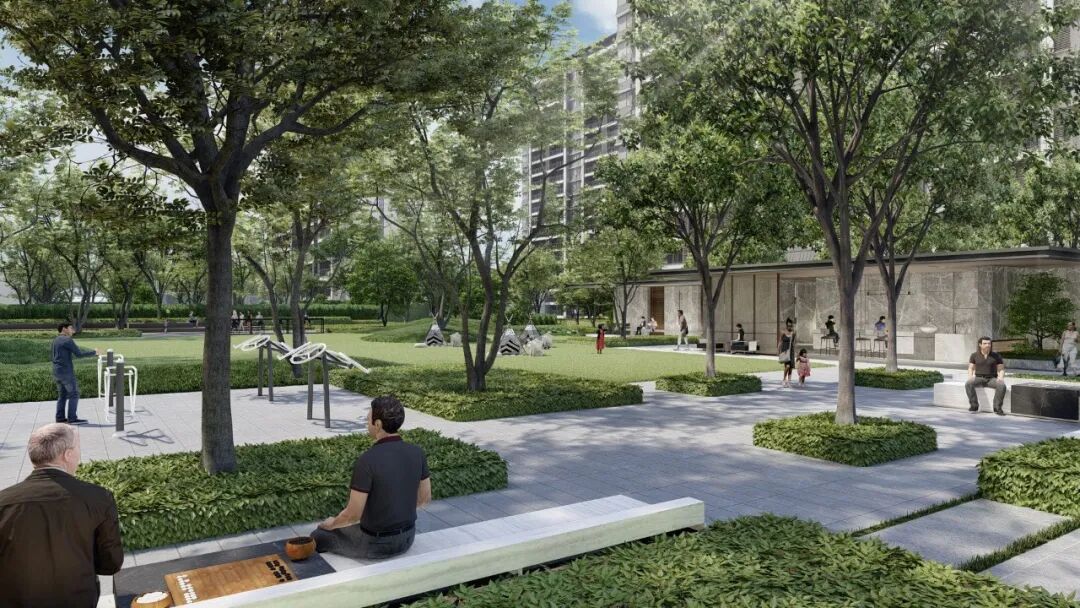 项目利用公园学校资源,和场地内部园林空间形成功能互补打造公园式归家体验,将新东方生活体系和森系理念融合,打造高品质感的景观空间体系,着重打造尊享归家空间、悦享时空乐园、体验社交剧场、特色青年活力聚场,营造“享回家”“趣玩吧”“漫生活”“氧乐多”节点,聚焦人所在的日常,营造社区独有邻里体验空间,建构关于新东方健康生活与自然的叙事性场景。