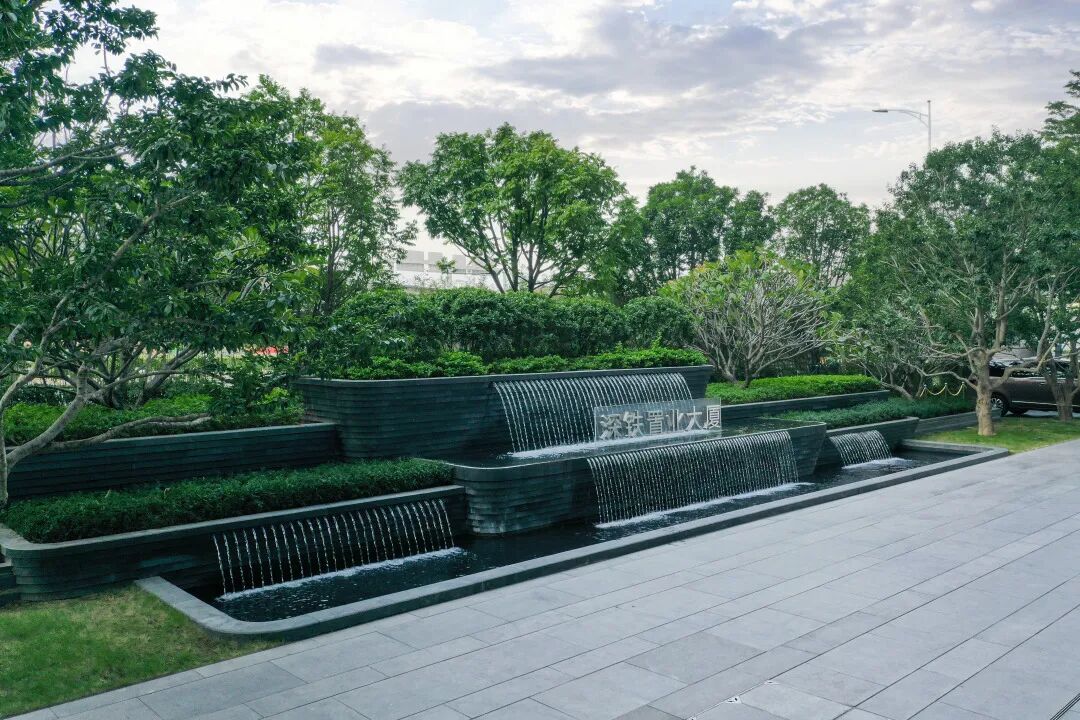 项目地处福田CBD中心西区车公庙段,位居深南大道城市封面首排,是集甲级写字楼、配套商业、片区大型交通枢纽为一体的超高层地铁上盖综合建筑,景观设计通过高级简洁的铺装系统、气势磅礴的跌水景观、便捷友好的步行体验营造出一个现代简约时尚的公共空间,实现人性化功能的基础之上,极大提升了品质形象。