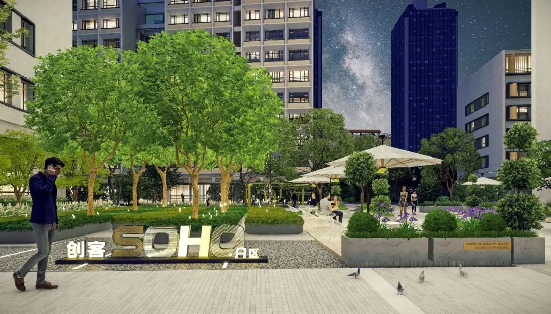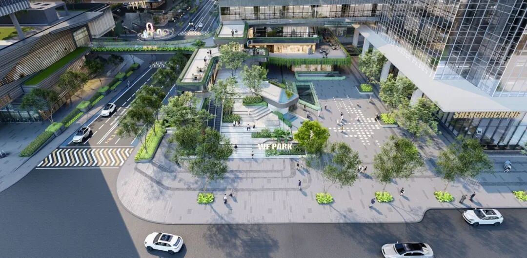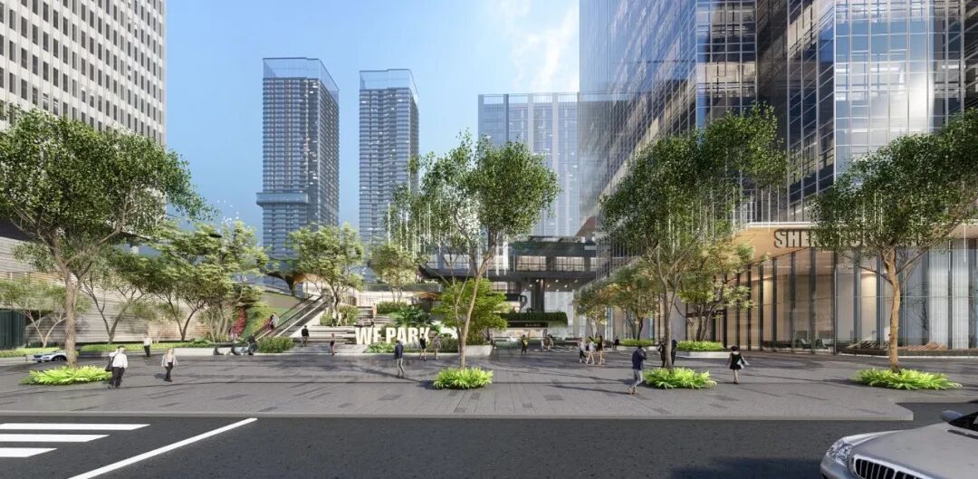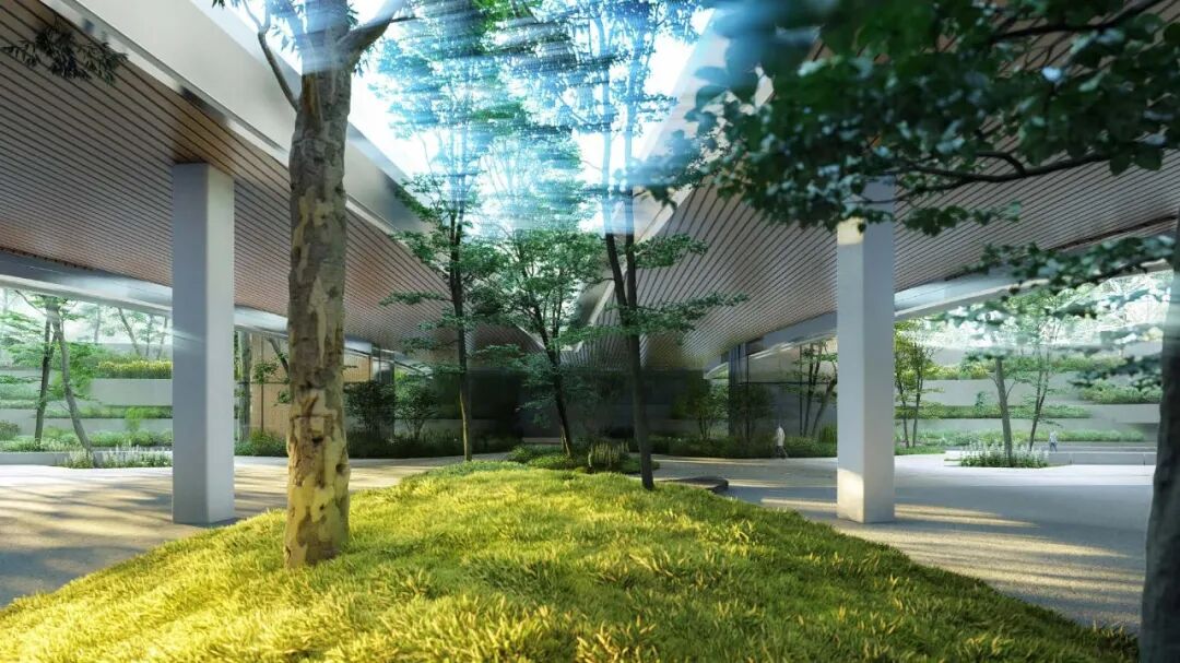 项目旨在打造生态立体、多维创意的高端艺术式多元商业办公区,无限、延伸的空间概念,通过景观廊桥立体化系统连接各个维度的业态,打造办公、生活、休闲、娱乐为一体的无界体验。打造多元共享的城市美学中心和24H全时无界活力圈。通过整体打造“大街区”模糊首层割裂感,同时强化二层连廊的串联营造共享首三层空间,形成无边界的体验空间,同时于屋顶打造专属花园。
