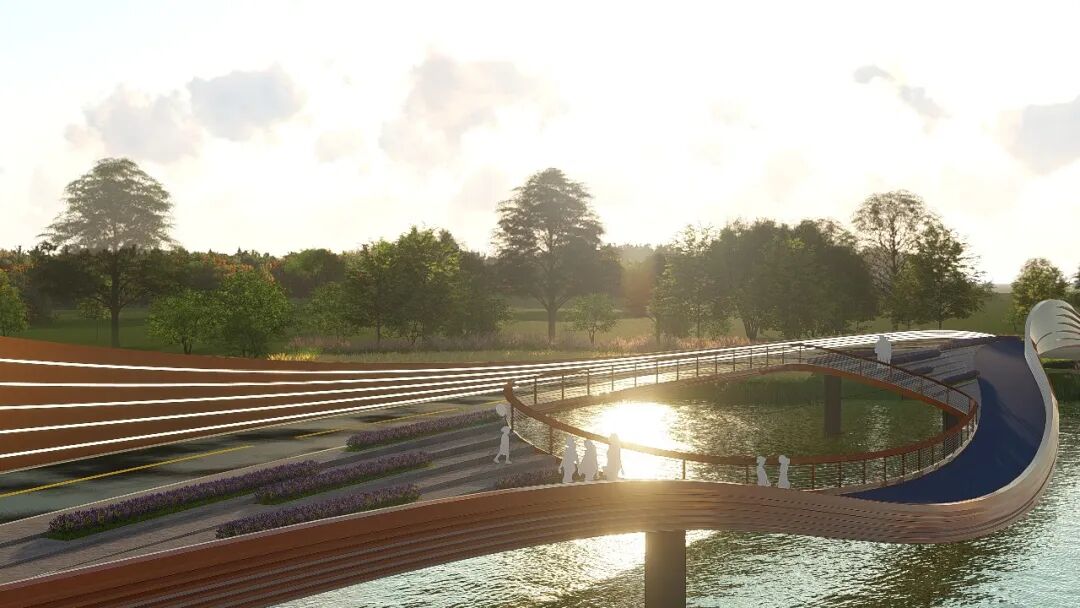 景观桥既是漫步、跑步、骑行的慢行道,又满足通勤通行,同时也将成为明珠湾的特色标志。人车分流的双向交通,在解决车行问题的同时增设观景平台,为人们提供良好的休闲观景视点。