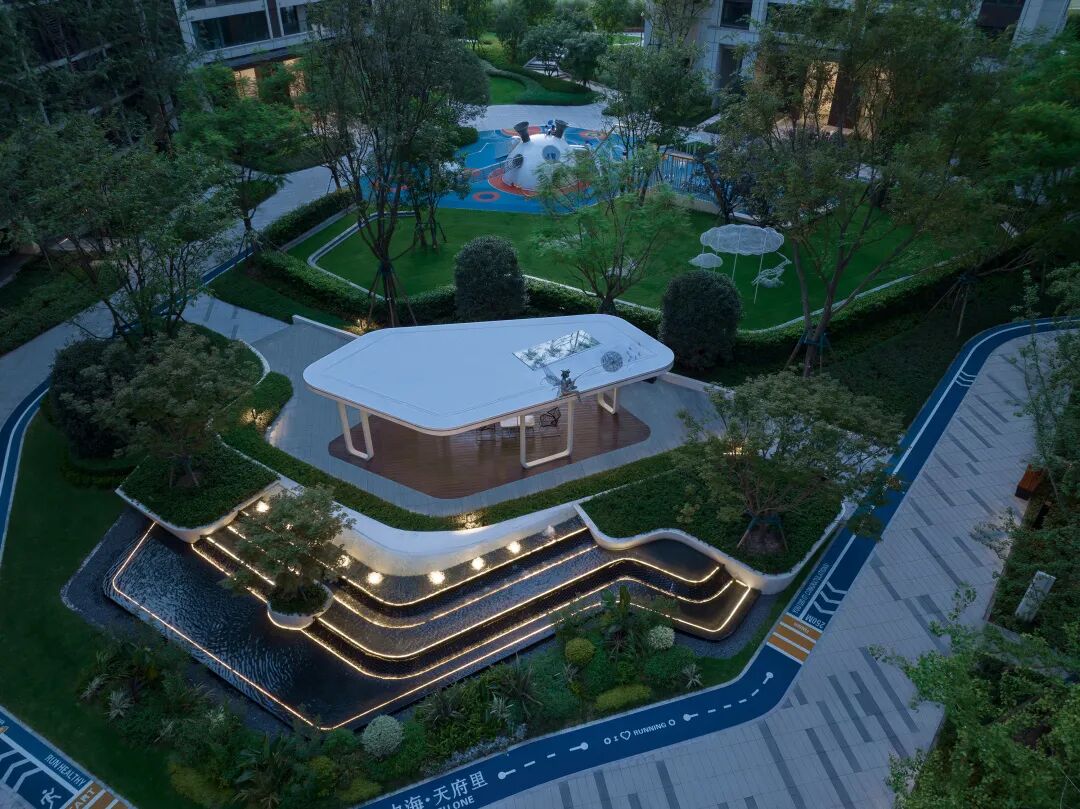 中海·天府里项目的景观设计之中,希尔团队以成都丰富的文化特色为底蕴,将浪漫而科技化的“云”元素引入其中,借以对话自然生态,将自然与城市进行艺术交融,形体上追求云的错落、起伏与堆叠,体现云的多变与自由,弘扬一种轻奢、艺术自然的生活方式,令人与场地产生情感共鸣,于亲近自然中体验一种现代都市的云端生活。整个项目打造一个融会客空间、活力街区、口袋公园、儿童乐园、阳光大草坪、老年活动场地、慢跑步道、架空泛会所为一体的云居生活范本。