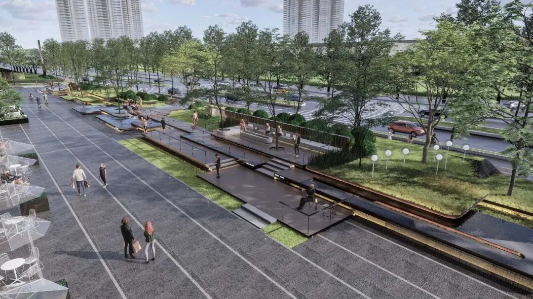 项目旨在打造兼具颜值与有趣的健康生活大城,以设计聚集有趣,让多元的灵魂创造个性有趣的生活故事。景观以“共生、同享、渗透、无界”为设计手法,营造不同业态间的生活场景、兼容公共场景与私享场景的交互渗透、创造不同人群共享的空间,消融距离,与生活无界、自然无界的生活大城,营建沉浸式的生活艺术场。
