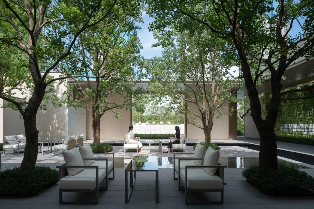 风华瓴著以标杆实践为主,强调后疫情时代的景观使命与景观品质。风华瓴著与传统项目的临时展示区有所不同,实体展示区布局在大区,所见即所得,希尔景观设计团队从现代人的环境现状与生活愿望进行分析,从场景需求到人本需求,融合现代美学理念,强调人与自然的共生,景观设计从大区的全龄会客中心开始,营造一个自然惬意、充满温度的景观空间,以小见大的设计效果带给参与者对于未来美好生活的畅想。