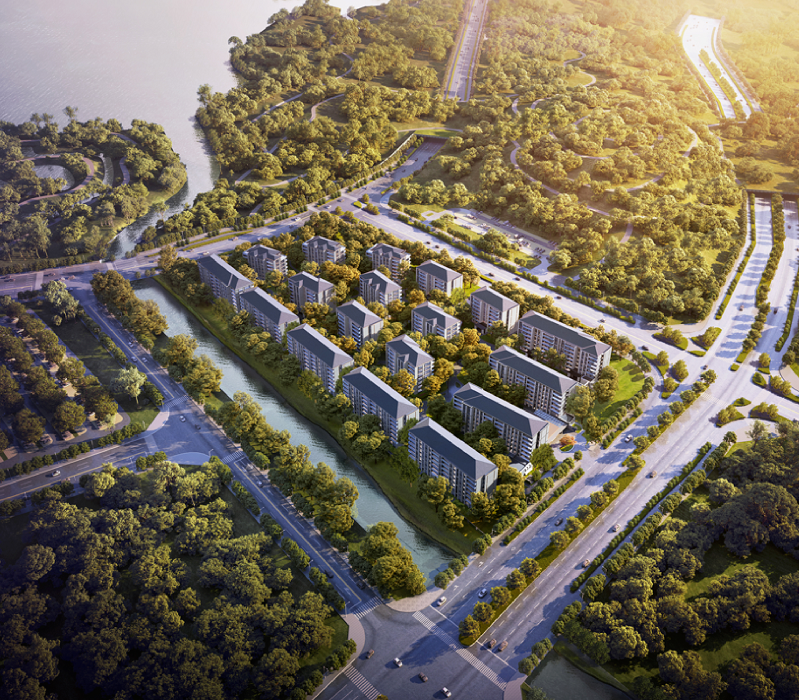 郑州绿城湖畔雲庐,中原第一座雲庐系作品,与中原科技城为邻,一湖四公园围合,规划布局灵动,建筑立面轻盈,凭借“现代形,东方意”的设计美学,荣获“全球未来设计大奖”一等奖。