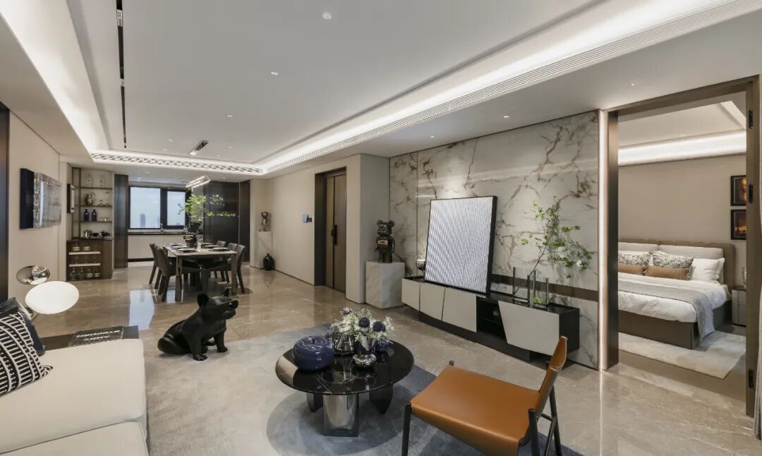 项目由李玮珉大师执笔共筑北龙湖收藏级成品。大师灵感为魂,注入永威精细化修为。汲取“极简即极奢”的国际化设计理念精髓,抛弃浮夸元素的堆砌,地面与墙面甄选天然石材和艺术漆,自然质感的纹理,呈现艺术品般的质地和极佳的触觉体验感。