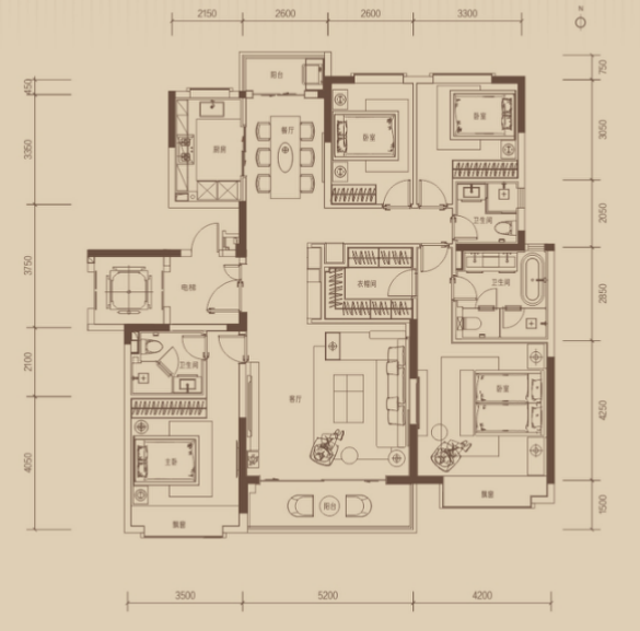 每一刻自在和舒心,源自对空间、尺度的不偏爱,约8米25客厅开间尺度,抒怀生活的恣意丰盈。南阳台客厅开间约21㎡,北阳台约12㎡,融聚生活想象。完美4+1空间布局,时刻享受被照顾的生活。