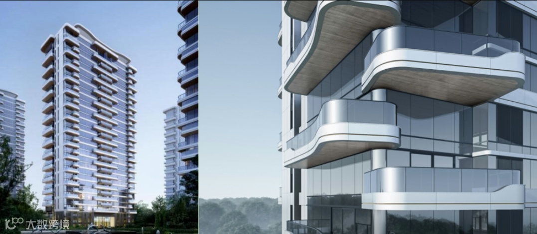 阳台采用上下错层设计,6.3m挑高不仅保证了足够的视野,更在立面上营造出层层叠叠,悬浮向上的形态,圆润的曲线使建筑整体造型富于变化,而又飘逸灵动。