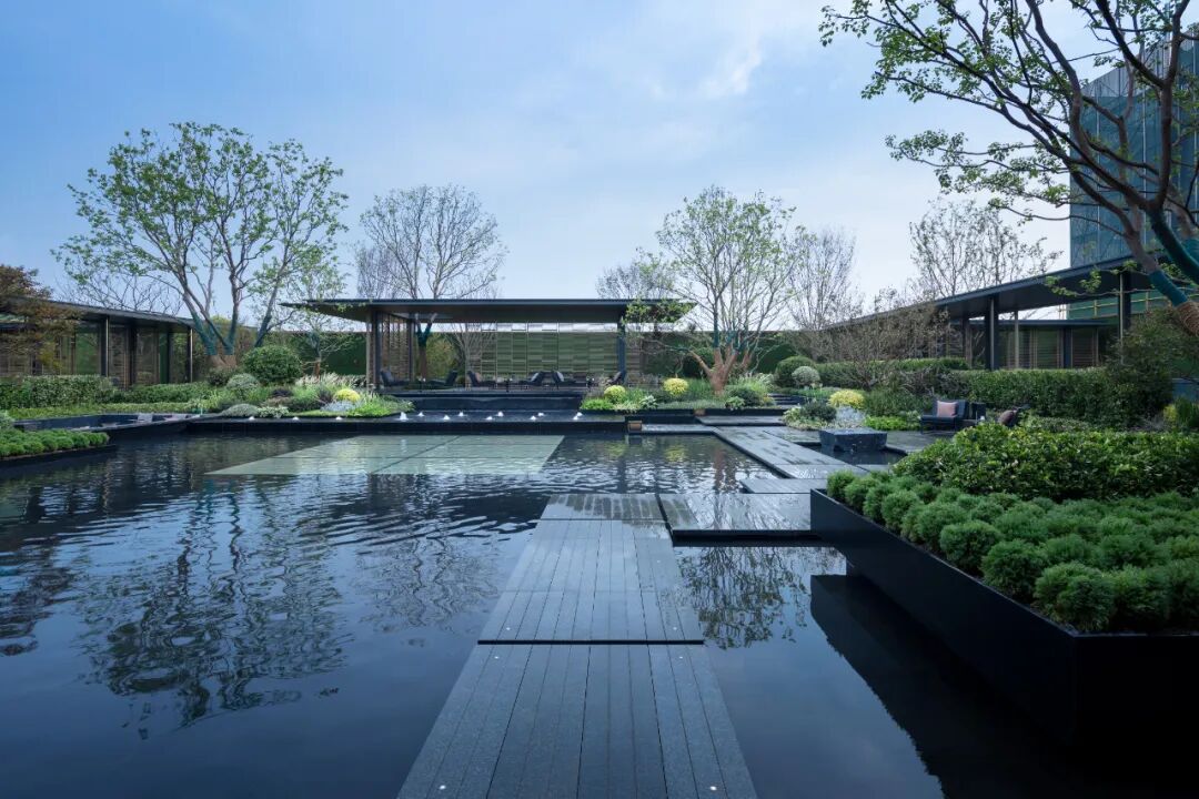 宝格丽风度假先锋空间理念、约1500㎡无界楼王庭院、沉浸式典藏会客厅、摩登户外会客厅与水院结无界融合。
