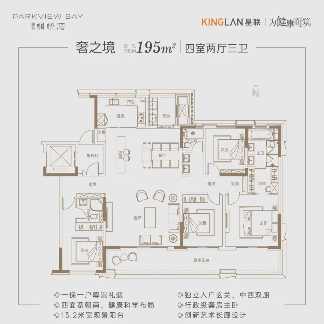 产品设计方面,星联枫桥湾规划建面约141-197㎡户型,一梯一户设计,生活质感油然而生。在户型设计方面,所有户型均为三开间朝南,通风采光良好。