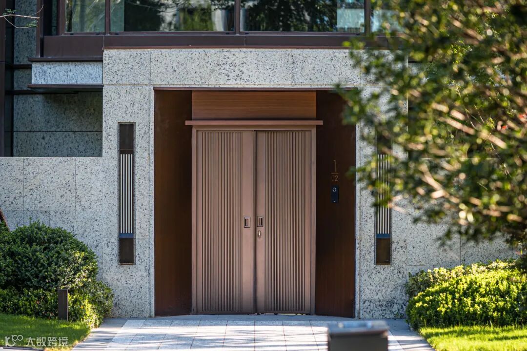 独特的入户门头设计,充分考究,精雕细琢,反复推敲:斜切角、材质、铝板线、转角角勾线等细节。