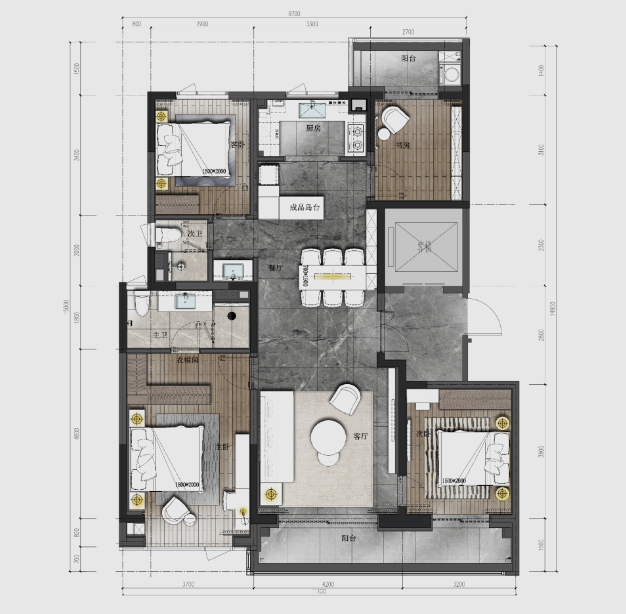 从外部到内里,从设计到生活,绿城·湖畔雲庐更是动用空间设计上的亮点优化,来强化日常生活的分区动线——在建面约168㎡的户型中,通过中西岛台的设计,重新划定生活的秩序,让理想有序铺展,让美好趋于圆满。