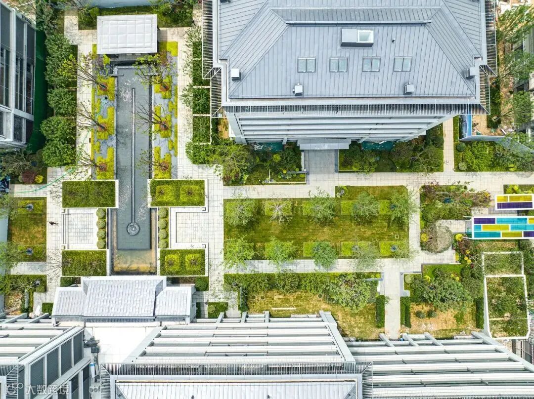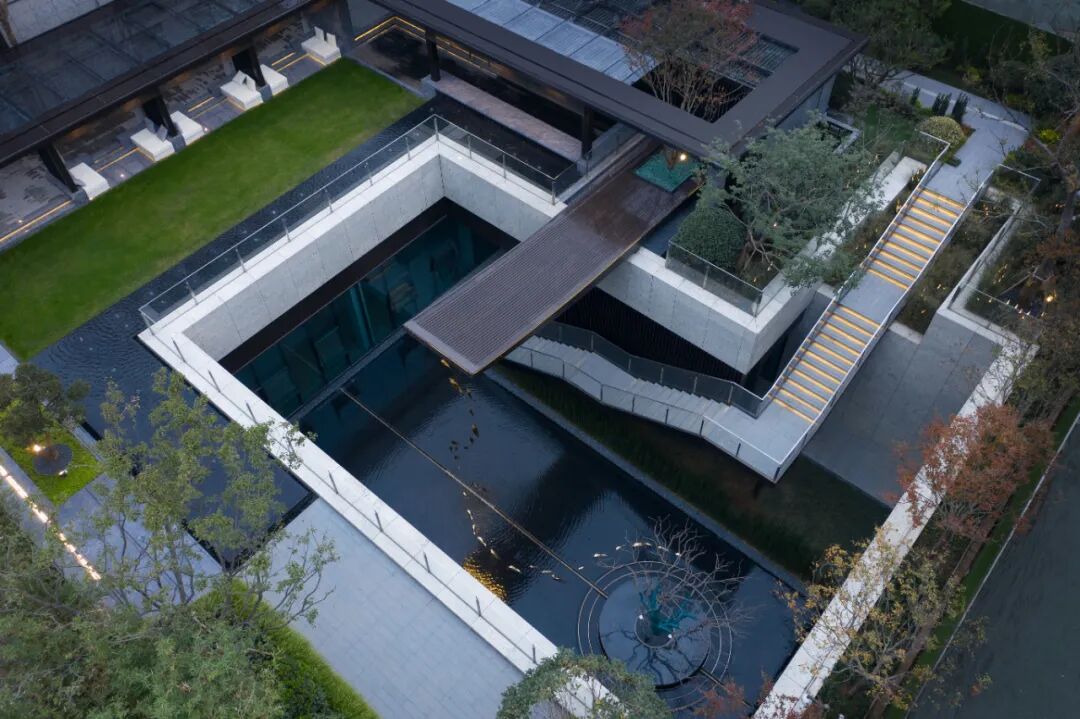 在屋檐设计上,则采用了中式坡屋顶的当代转译手法,屋檐飞起、华盖明堂,传承国人心中始终保有的大宅气象。