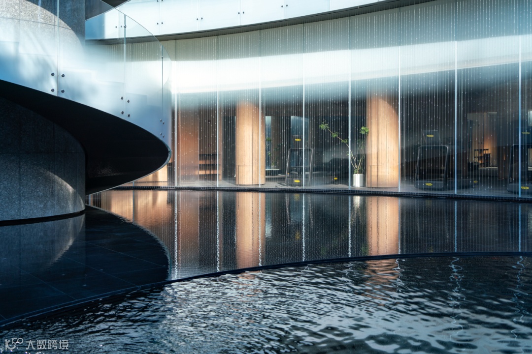 大门处潺潺流水与周遭环境相辅相成,自然与艺术的交织。