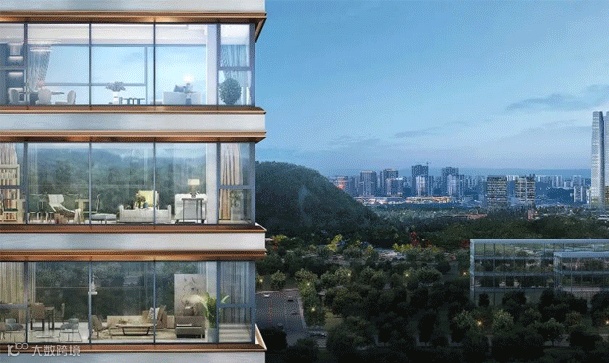 270°环幕客厅,Super Flat曲面转角玻璃幕墙、金镶玉高级工艺,带来“超平面”美学体验,阔达8、9米的落地窗,让室内空间与室外景色的界限消融,呈现非凡的享受。