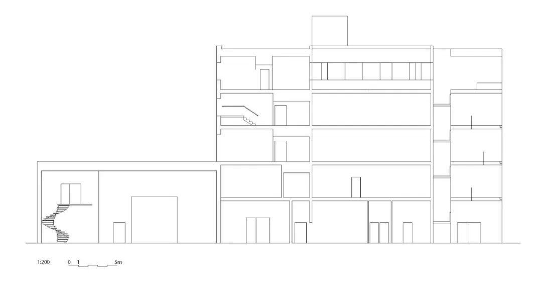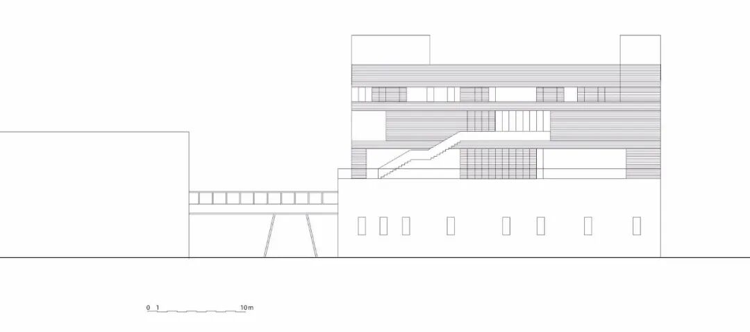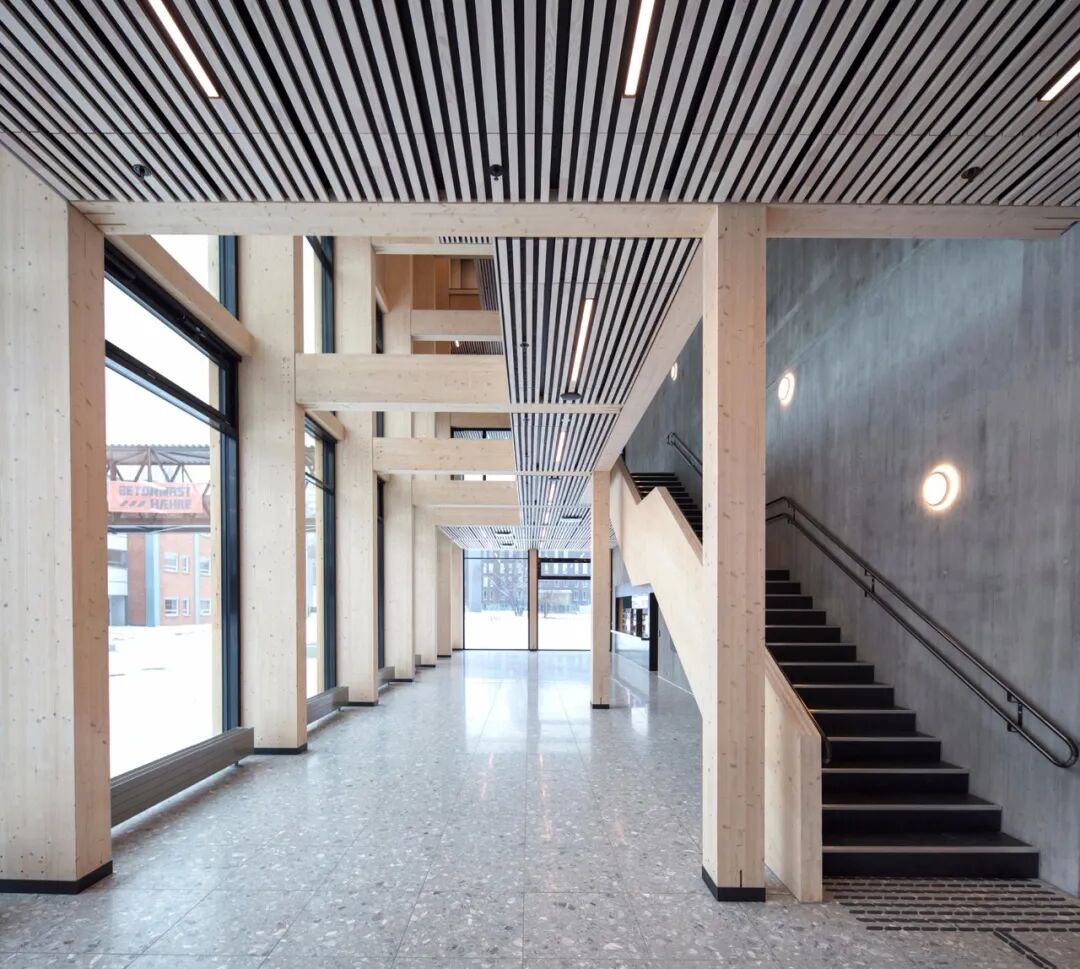 通过简单的几何形状,这座 5 层楼的建筑与现有机构的现有结构产生了对话。它的方向和占地面积进一步扩展。垂直的开放式循环定义了建筑物的核心,并有助于用户之间的积极互动和协作。