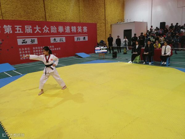 而跆拳道的武道锻炼能达到精神上的修炼,使人战胜自我,克服自身原来的懒散、胆怯、懦弱、自卑、消极等缺点,培养积极进取、顽强拼搏的精神以及坚韧不拔、自强不息的意志品质。所以,跆拳道的课程深得孩子们的喜欢,也得到了家长们的重视,这些年以来,学习跆拳道的孩子也是越来越多。这一点,从今天比赛的热闹场面,就可见一斑。
