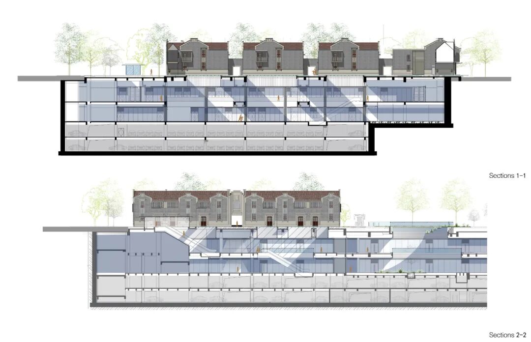 2016年,Kokaistudios应邀参加了位于上海苏河湾绿地地下商业项目的设计竞标,但设计最终呈现出的却不止于商业,而是城中一处全新的公共空间,一个在河畔绿地中聚集了人文和休闲设施的开放性街区。华润置地选择了Kokaistudios建造一座“城市峡谷”的愿景——在绿地中打造地下商业空间,并通过一系列阶梯地景式的公共空间设计使其完美融入绿地中。