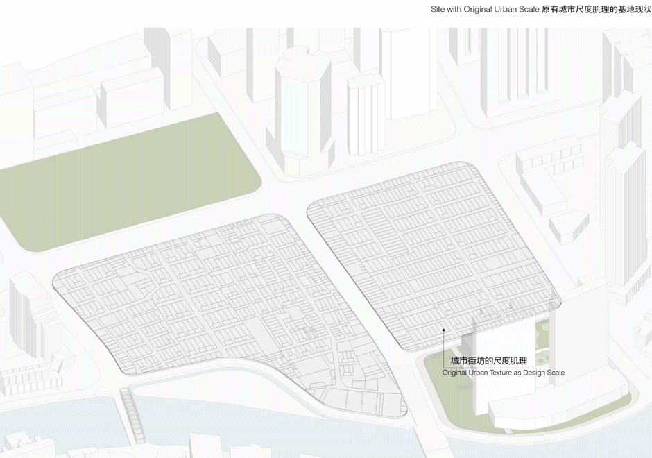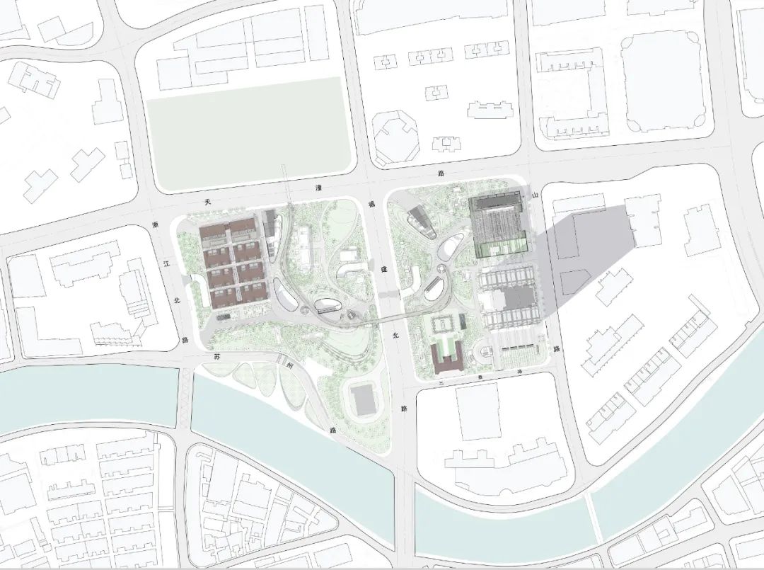 苏河湾地区的规划开发表明了当地政府计划缝合苏州河两岸,重振苏州河北岸地区的前瞻性眼光,而该区域作为上海过去、现在和未来的交汇点具有极重要的意义。连接苏州河水岸与腹地功能,丰富滨水地区功能复合度和土地集约价值,这也是Kokaistudios设计的切入点。
