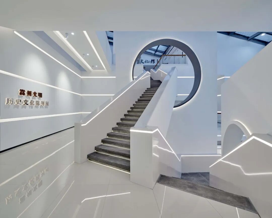 The Duality of Mountain & River. The duality of the mountain & river is integrated with the emptiness & entity of volume, the opening & closing of space, and the logic of functions, and is expressed by the combination of geometric forms. The glass roofs of the public space are like streams rushing down from the mountains, covering the main hall and the foyer of the archives on two sides.