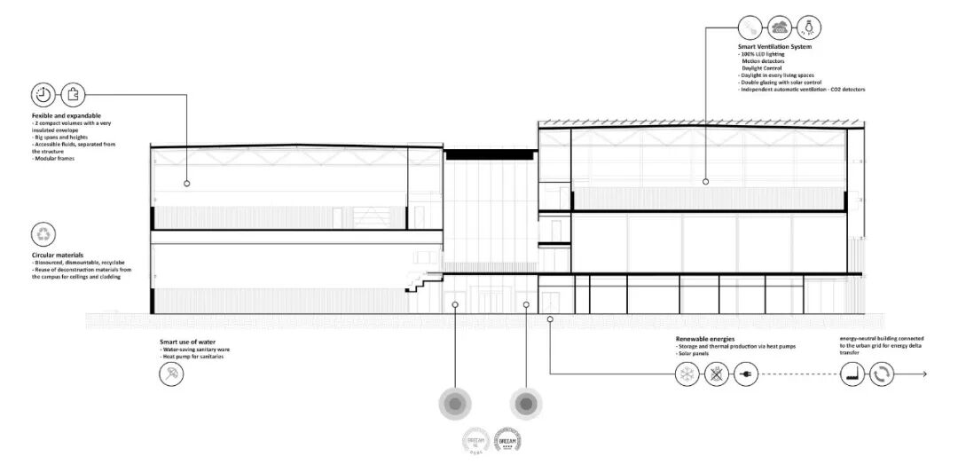 重建生态系统。由于VenhoevenCS和伊拉斯谟大学在可持续发展和能源消耗领域的雄心壮志,该建筑的功能是能源中立,这是一个日益紧迫的条件。所有的设施都是为了捕捉、保留、交换和再利用水和太阳能;并尽量减少其使用。这些是VenhoevenCS所有设计的主导原则,如巴黎2024年的水上运动中心和Lokeren的新体育场馆(BE,2023年)。此外,我们用从循环拆迁中收获的建筑材料塑造了公共内部。