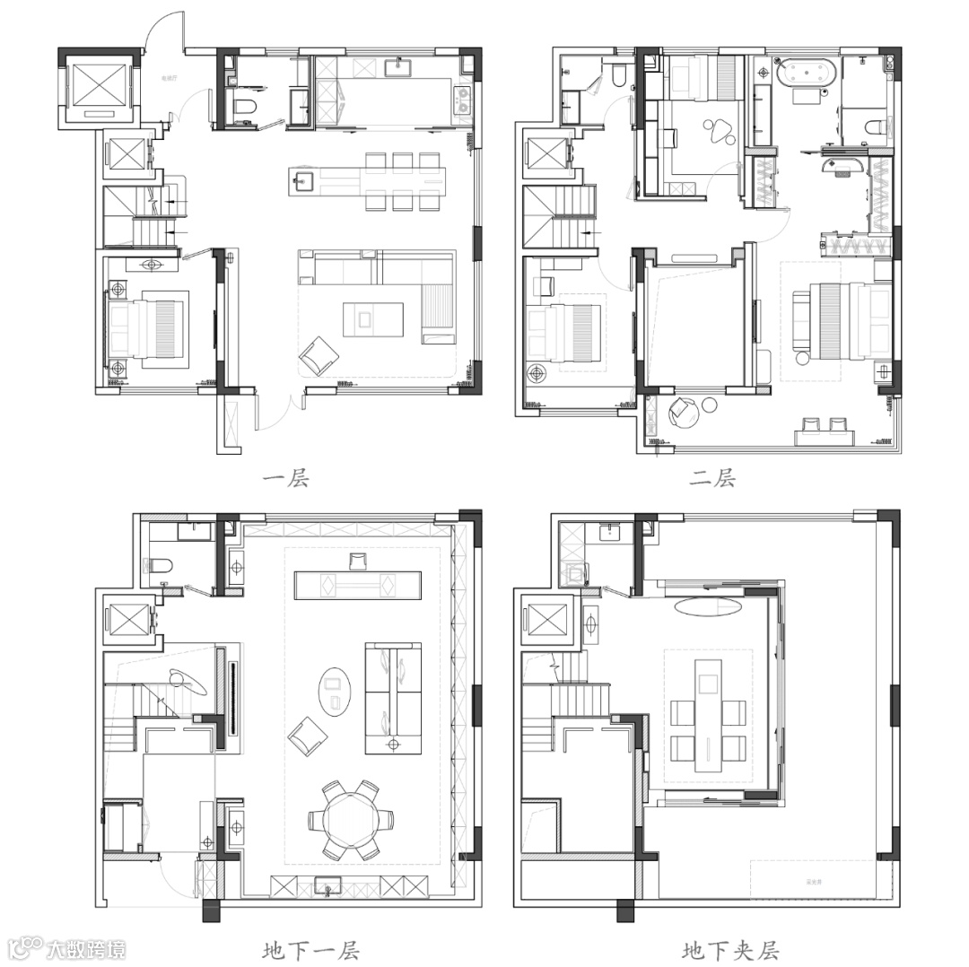 巧用山地独特地形、天然的地理高差,使得“负一层”跃然平面之上,形成阳光“双首层”设计,抬高的不止是地下空间,更抬高了生活的品质。空气阳光穿透室内,每一层都可以实现超大面宽的景观面与采光面。