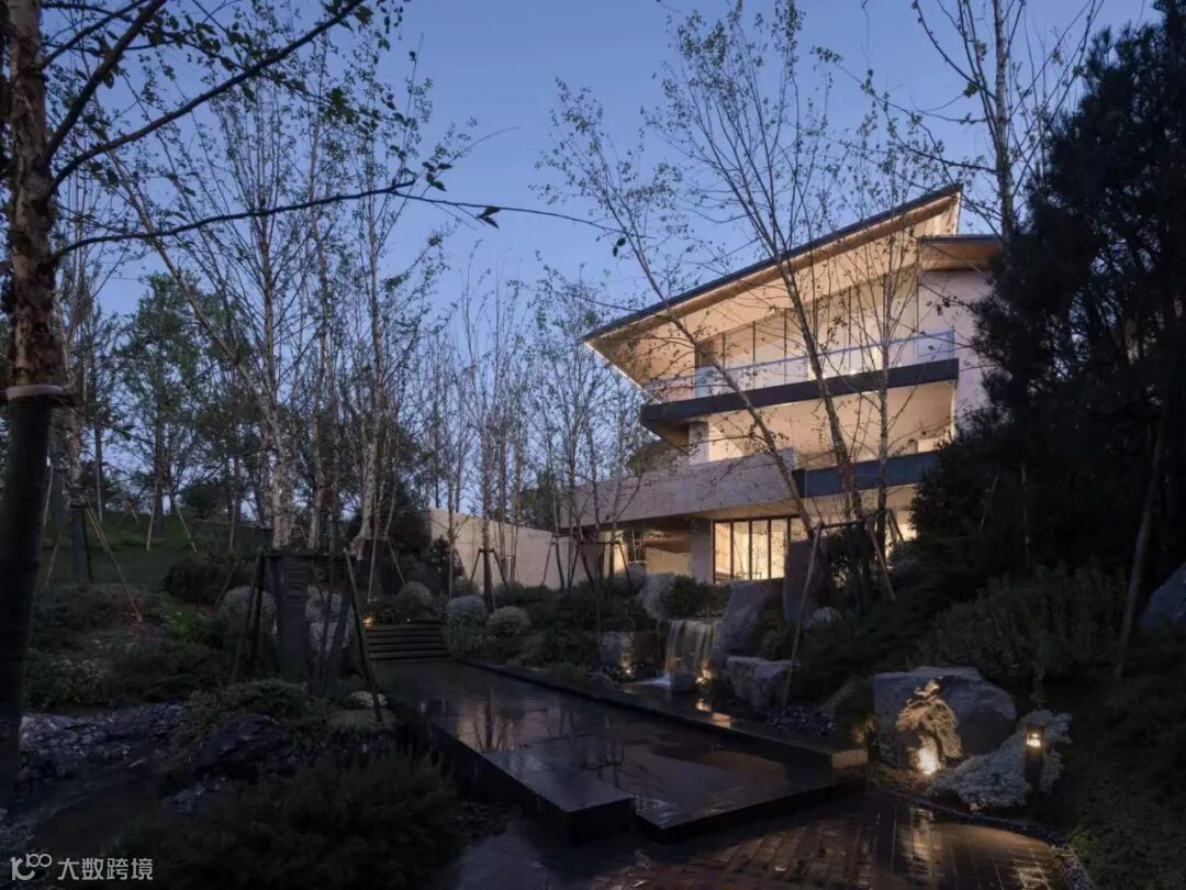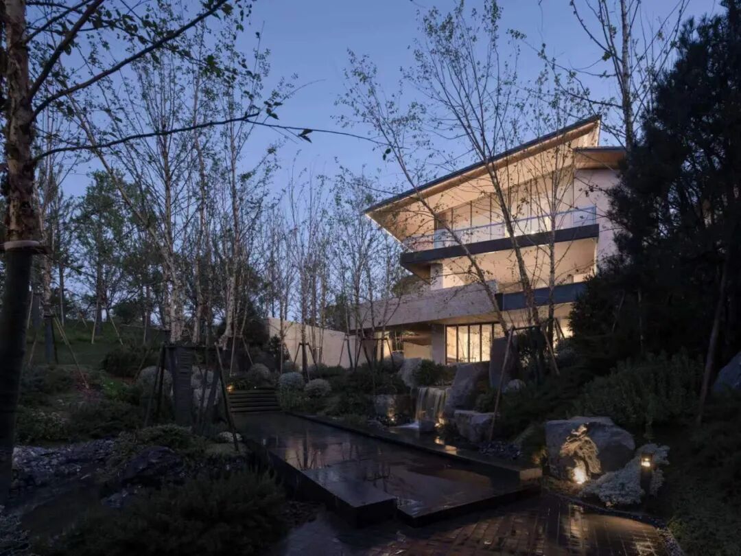 利用层层退让的台地设计,项目设计三条逐溪水线,通过台地竖向模拟山林水景,营造跌瀑、曲水、纤溪的场景,打造“人从山中来,归向山中居”的场景,为业主营造度假式的山居生活氛围。