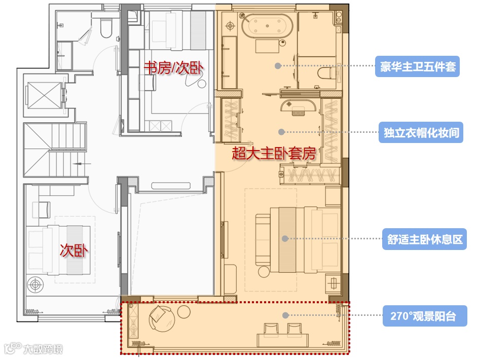 ◎ 面积大,空间感强,居住舒适度高,且私密性强