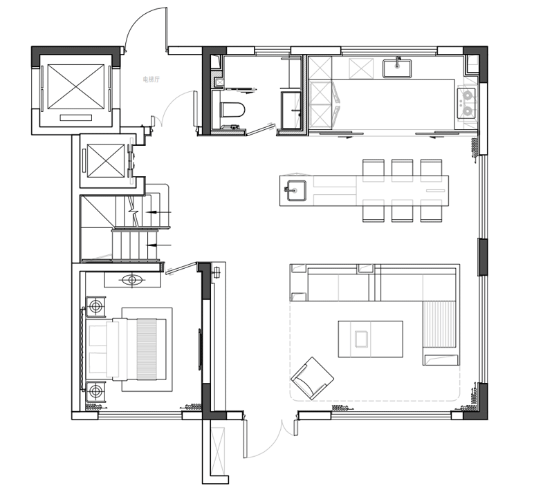 预留内部电梯位,实现三重归家入户方式:地下车库归家、一层南北双入户。