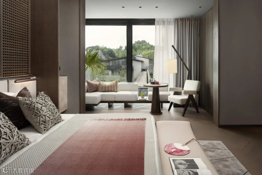 巨幅的玻璃窗消解边界,更大限度的将外部的自然景观引进室内,真正的做到了“与山无界”。