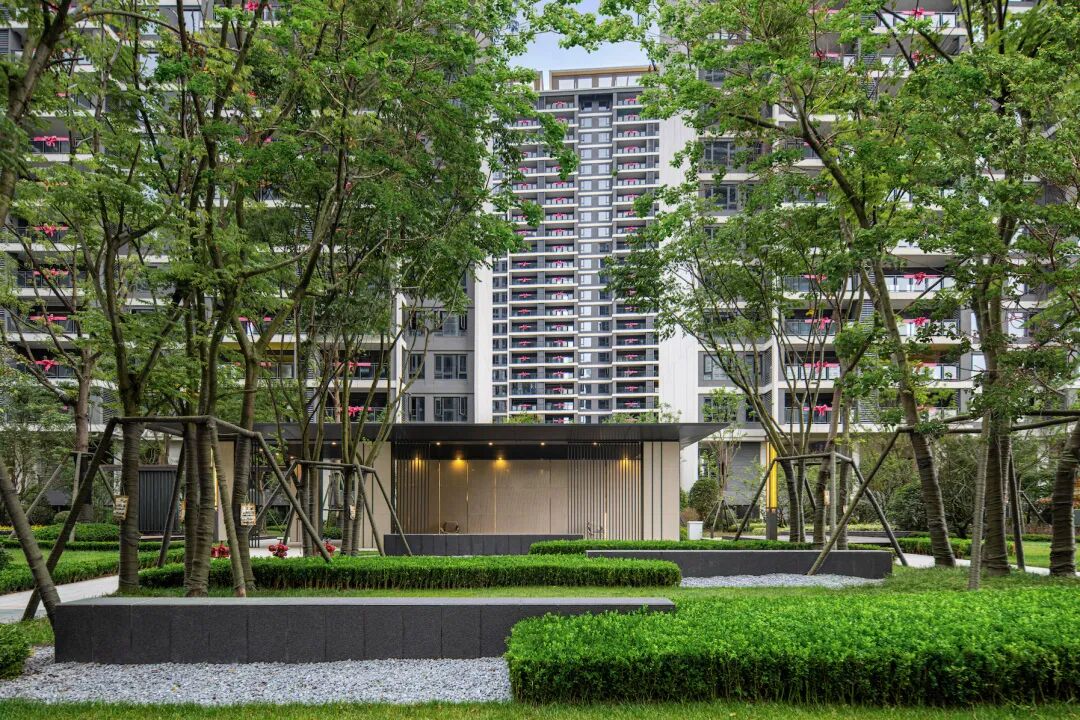 栖居于山,时间也在这里放慢了脚步。会客厅作为园区主要的共享空间,以阳光草坪结合丰富的植物组团,营造出适合住户活动的公共空间。林下空间、阳光大草坪、多彩儿童游乐空间,带来轻松愉悦的休闲体验。清风拂来绿意,邻里在这里相遇,一起交谈、阅读、品茗,静赏四时更迭,光影变幻,邂逅诗意与美好。
