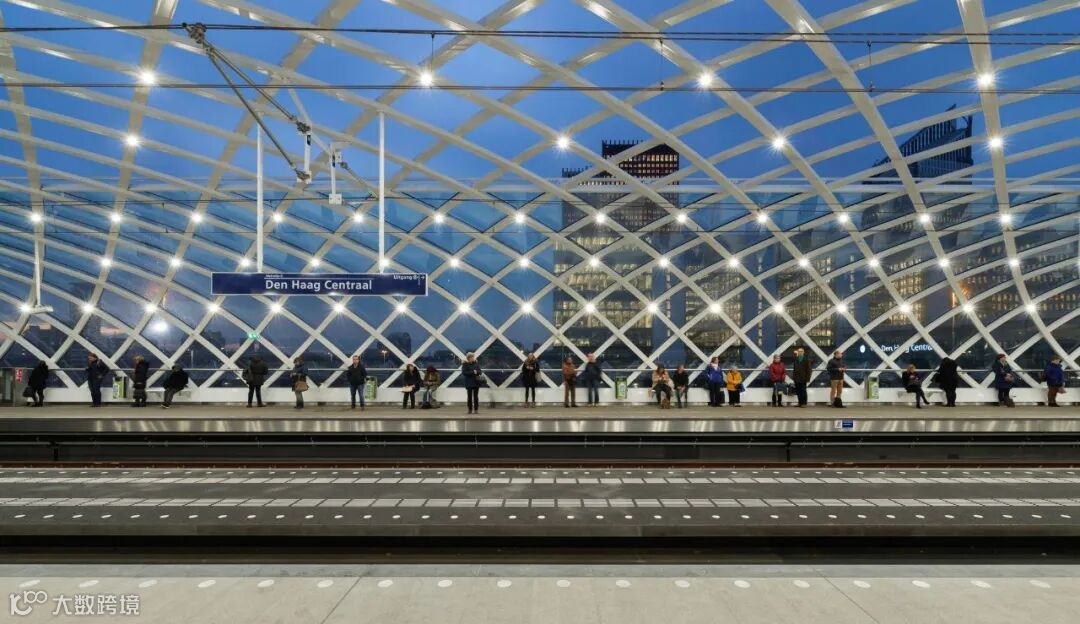 荷兰海牙灯塔的特点是在站台上方有一个细长的玻璃和钢铁屋顶。有顶棚的走道以富有表现力的钢顶棚的形式连接了照明站和海牙中央站的主大厅。