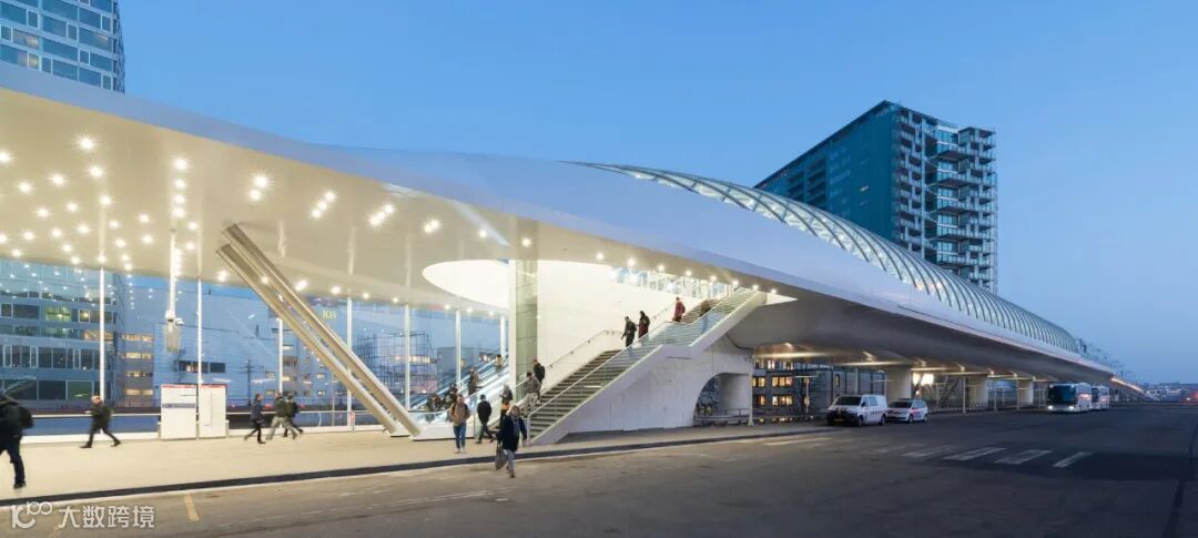 屋顶的流动形状提供了避雨和避风的场所,并允许充足的日光进入。傍晚时分,LED灯的星空照亮了平台和通往灯光站的有盖通道。独特的建筑特征。与海牙中央车站及其周围环境相比,lightrailstation有自己强烈的特征。屋顶和顶棚的雕塑形式是一个真正的吸引人的地方,但也很好地考虑了人类的尺度。同时,灯光站也与极其复杂的城市环境完美地融合在一起。