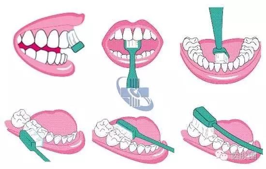 刷毛应与牙齿、牙龈成45度角,以画小圆圈的方式活动。