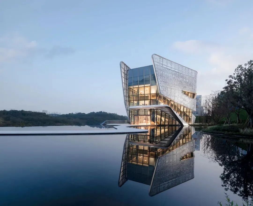 重庆麓悦江城城市会客厅由国际建筑事务所10 Design设计,该项目总建筑面积约9千平方米,共五层高的主体建筑坐落于中国重庆的位于陡峭的山坡上。