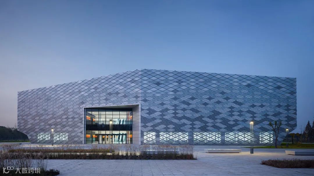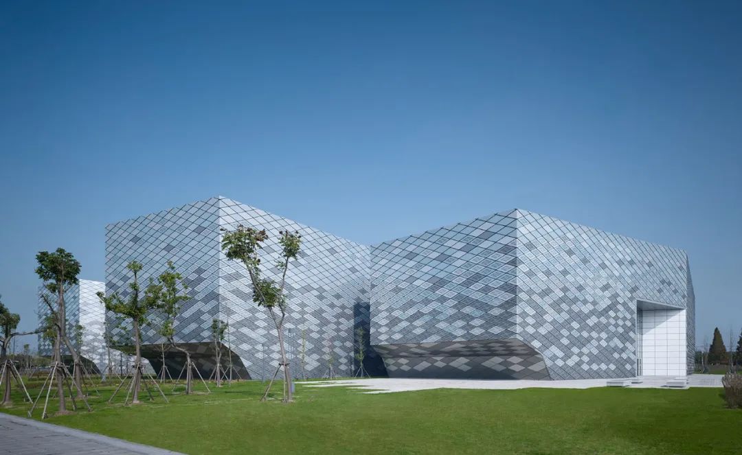 由gmp·冯·格康,玛格及合伙人建筑师事务所设计,整个建筑群外立面、屋面覆盖菱形鳞片状铝板,仅有位于南北侧入口以及建筑体之间接缝处为玻璃幕墙。