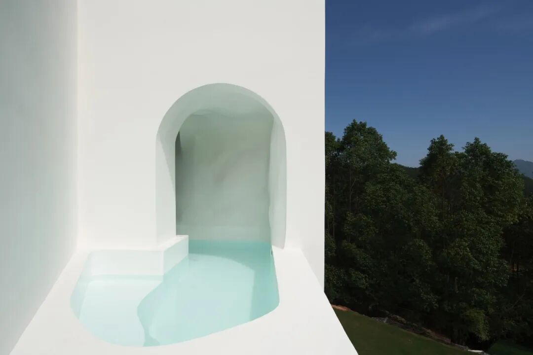 White is not only a color but also a deep feeling. The infinity pool and the blue sky form a dialogue with each other, forming a scene of the unity of water and sky, just like a spiritual lake in the space.