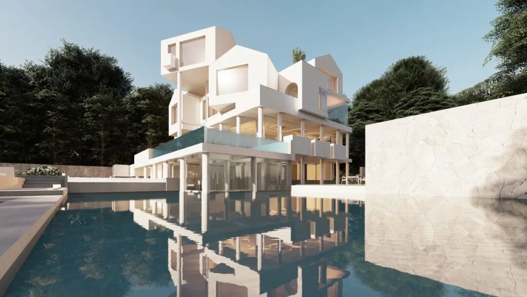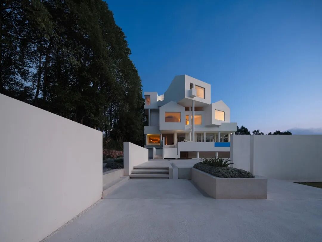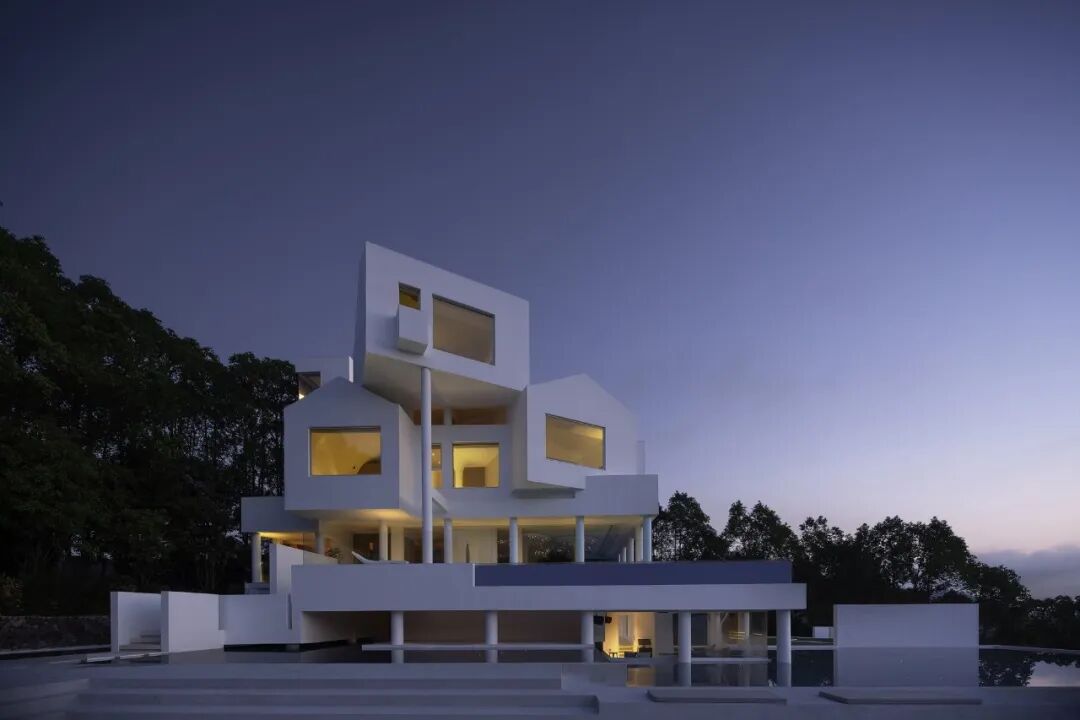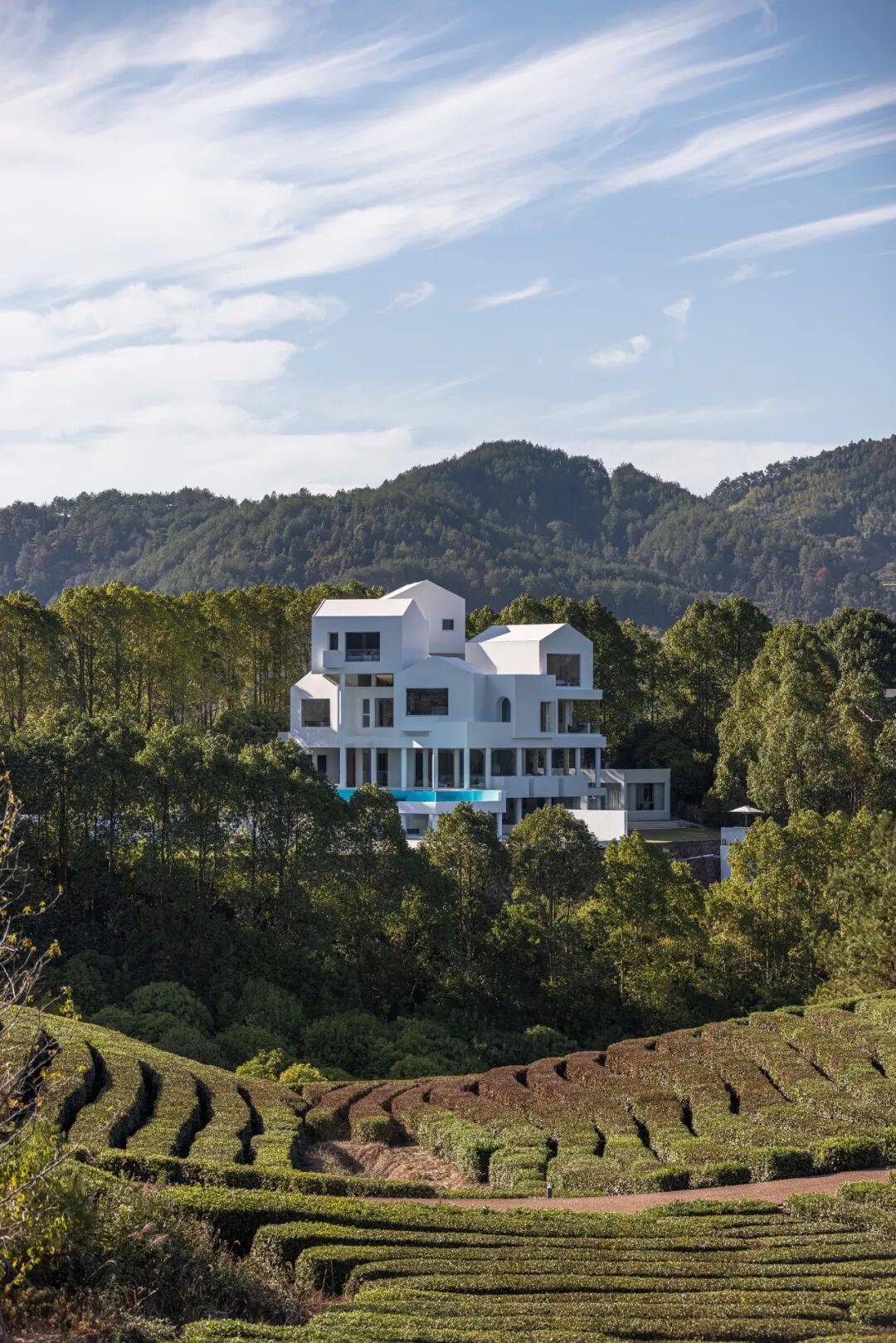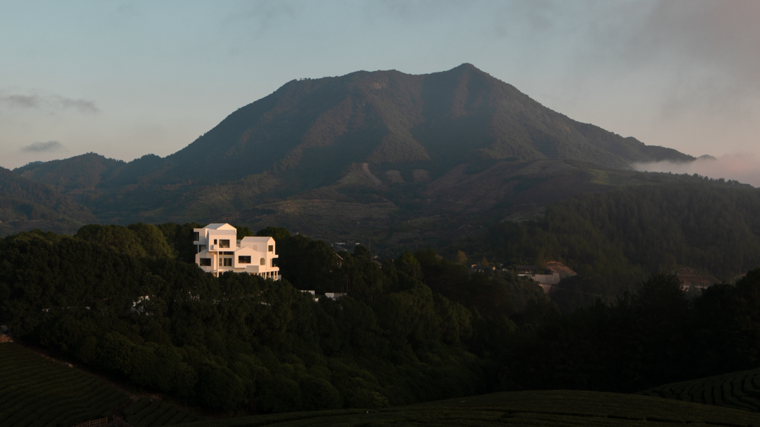 In view of the unique geographical environment of the hotel surrounded by mountains, the designer used white paint on the building, like an off-white tree nest, depicting the boundary between light and dark in the forest, creating a unique landscape standing in the mountains.