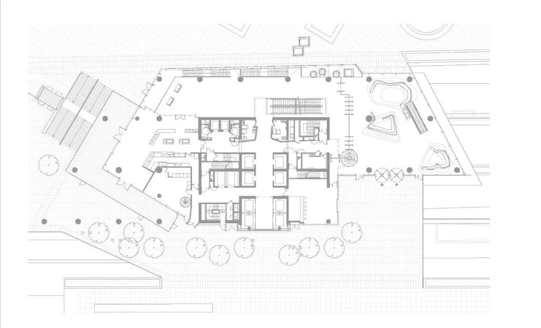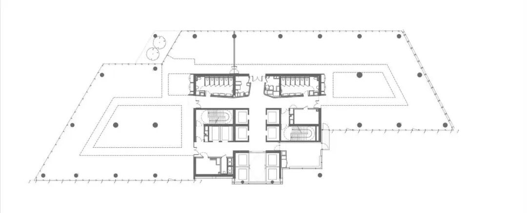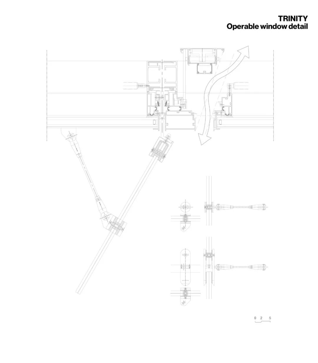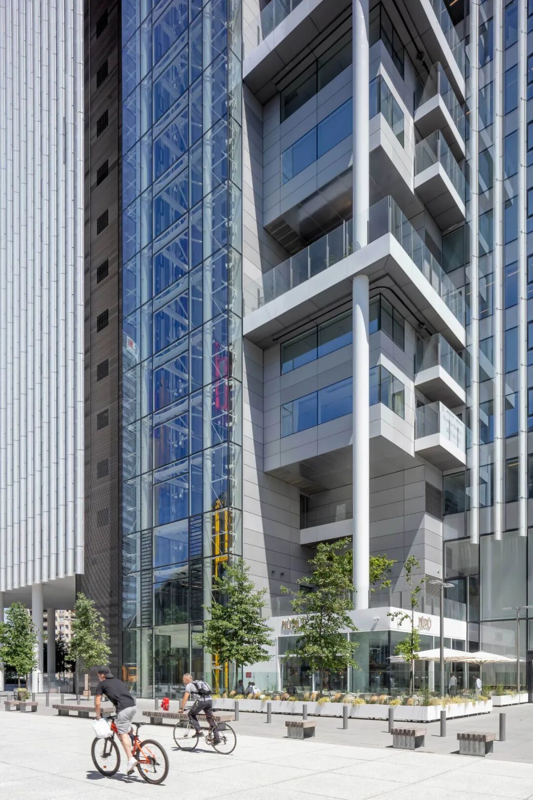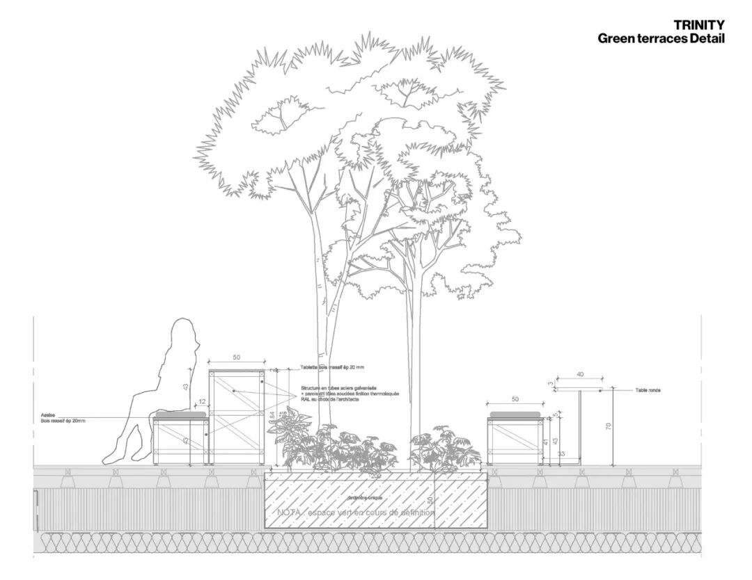 该塔楼共有1500平方米的室外空间(8个露台、12个木屋和23个阳台)。该项目也是一个可持续发展的典范。除了每层楼的种植露台外,三一大厦在每个第二立面网格中引入了生物气候玻璃立面和可操作的窗户,以创造内部和外部之间的互动。