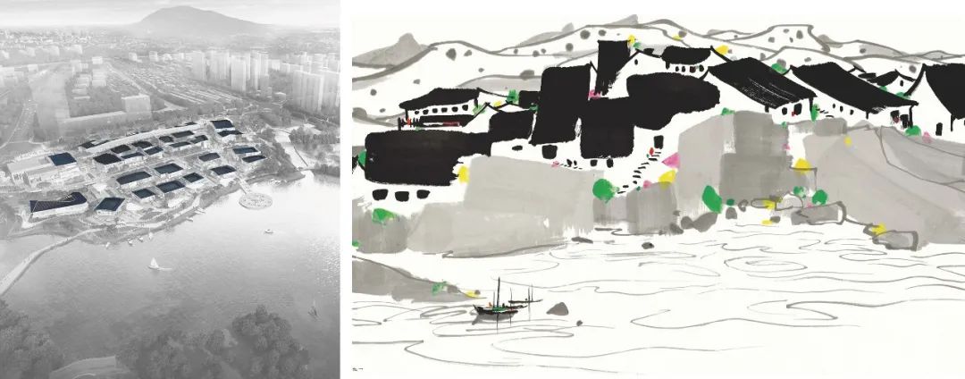 ▲ 抽象概括江南民居黑白灰的画中景 ©DDB秉仁设计