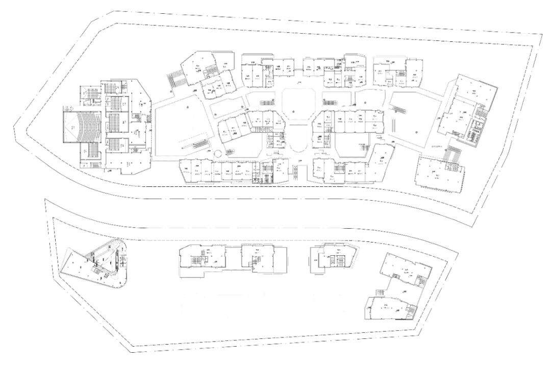 项目以商业逻辑为线索展开全面设计。基地由东西两块割裂的场地构成,针对两个地块外部条件及商业价值上的不同,设计遵循用地各自特性及土地价值最大化的原则,采用和而不同的设计策略。整体规划及建筑形态上,注重统一而有联系的特性,根据地块特质进行各地块内的业态布局。