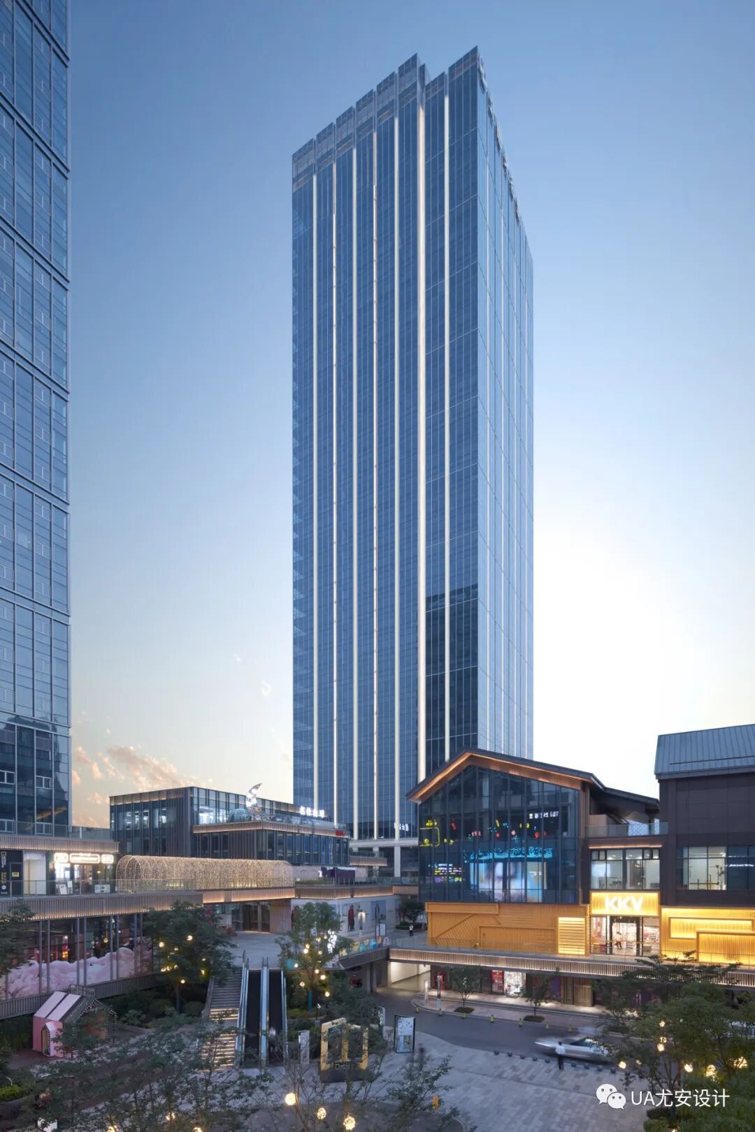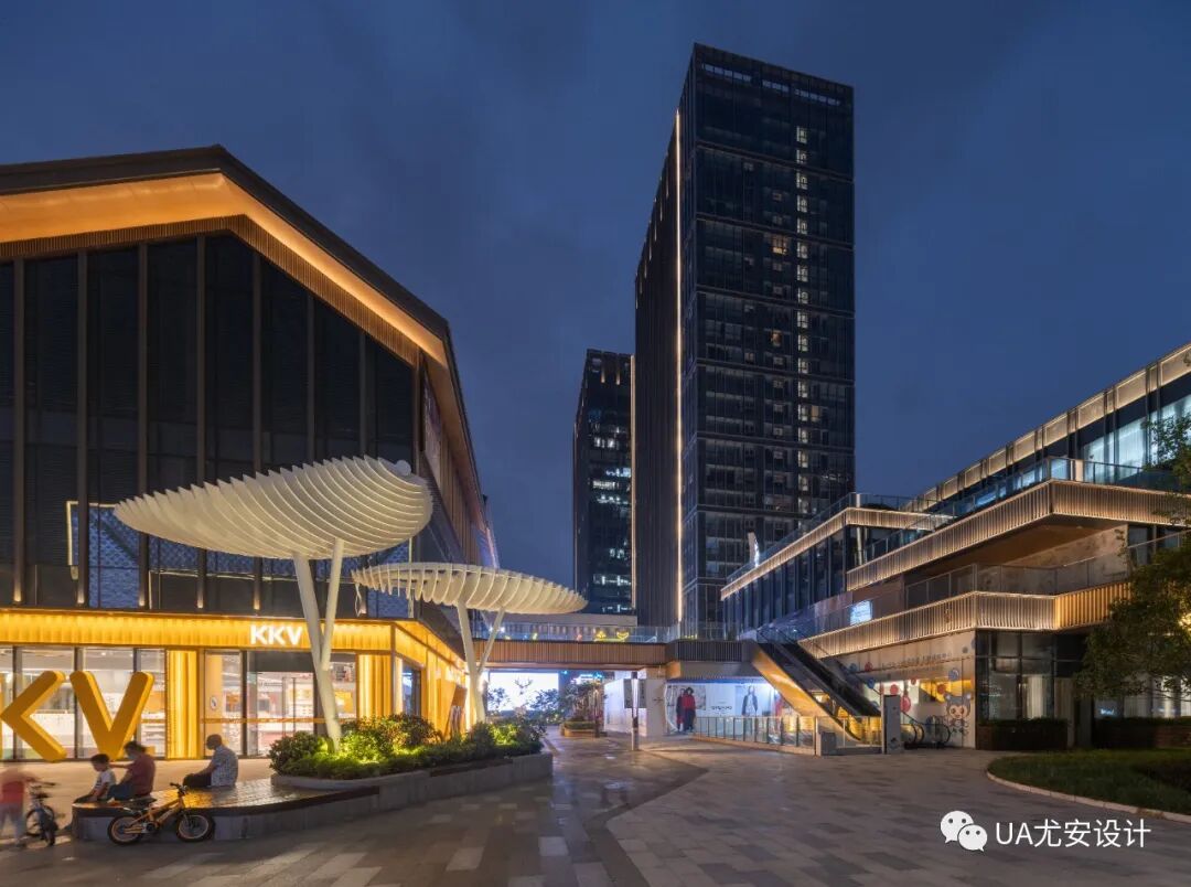 空中连廊以平台式结构叠加多个街区,突破场所的边界让空间聚合力大幅提升;双首层、多广场,用缓坡连接走廊,形成流畅动线,交互感十足,带给人极其舒适的游逛体验。