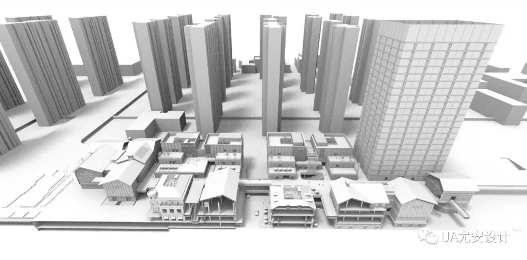 基于基地四周现状功能的多样性、日照条件的较多限制及打造创意复合园区的目标,设计不仅仅在建筑布局落位、办公产品创新方面存在难题,“如何以产业服务为抓手,以商业街区为平台,将产业与商业互为引力,促进产业IP与商业业态融合,探索产业破圈商业新模式,为光谷文化创意产业基地提供一个交流、展示的平台,赋予场域产业发展活力”,更是设计的重中之重。