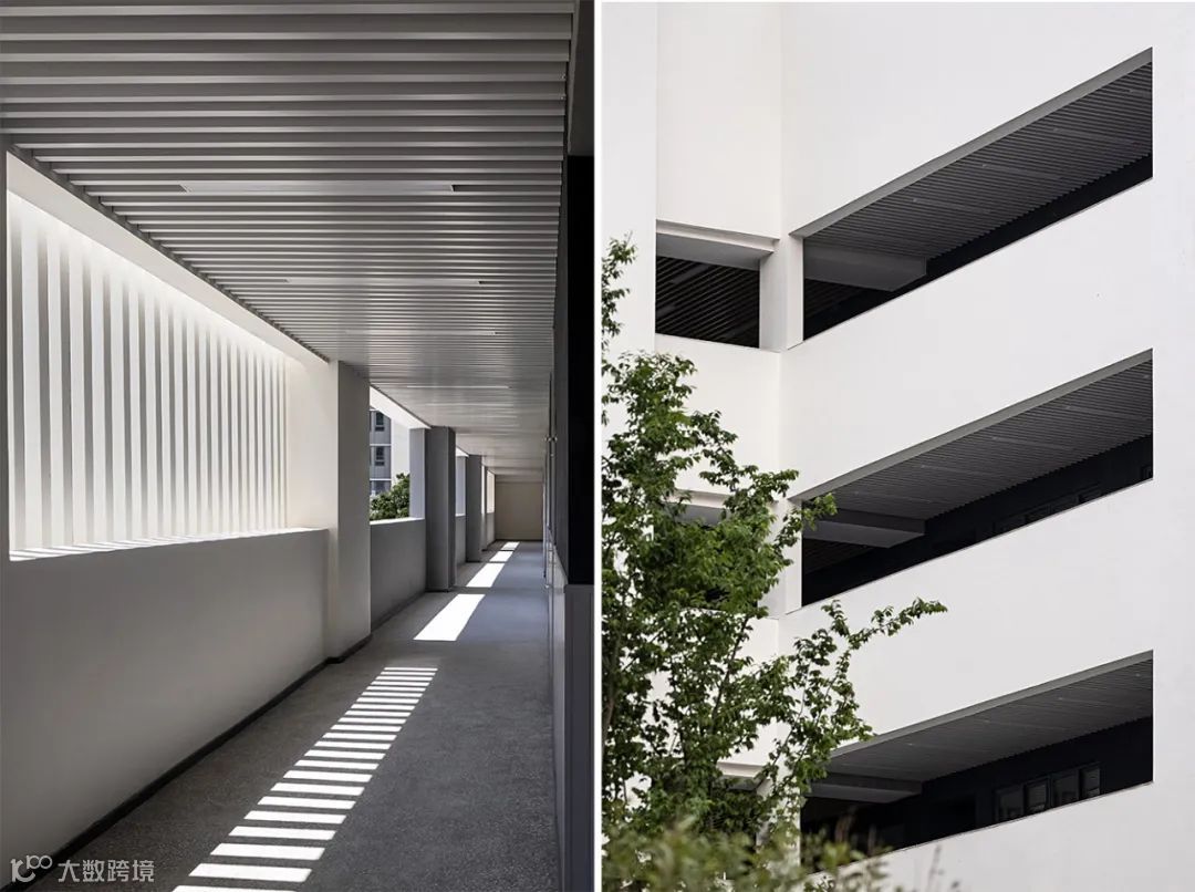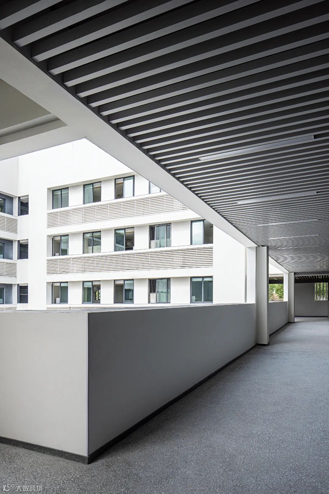 设计通过外立面格栅,把自然的“风、光、雨”从室外引入室内,使师生都能感受“回归”自然的校园生活,重新与自然建立健康的联系。