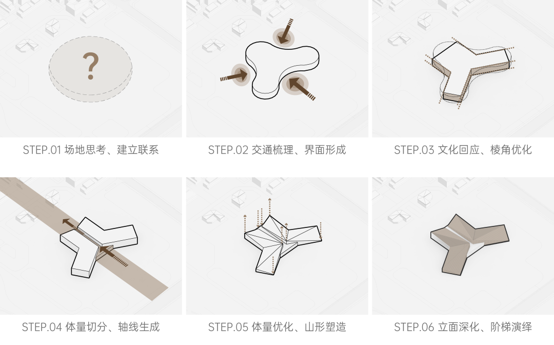 设计团队从体块规划上入手,体块思考上根植于环境,将建筑文化及功能更好的凝练于设计之中。