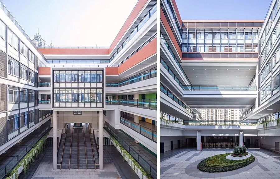 一个校园空间需要承担知识传承、启迪心智的职能,同时学校是微型社会的雏形,学生们在成长过程中的公民意识被无形而且深刻的塑造,学校即是对未来社会的一种空间愿景。荔园外国语小学北校区尝试了在学校的封闭性与社区公共性之间达成平衡,实现了空间的灵活自主与多样性,同时保证了校园的安全舒适,在高度密集的城市中心创造一片开放共享的人文绿洲。