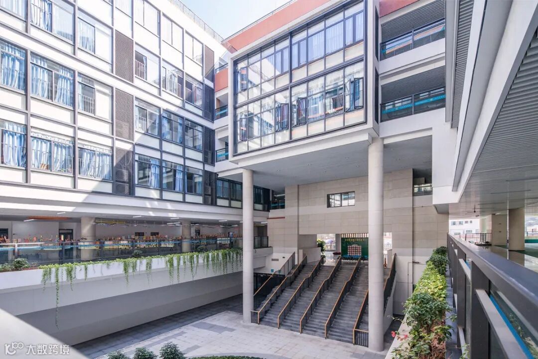 近年深圳城市加大教育方面财政投入,扩大中小学规模,新建大量学校,增加学位供给。然而受限于有限的土地资源,校园建设多采取了更为高密度集约化的模式。根据其对四个一线城市相关规范标准的统计显示,深圳学生均用地面积低于北京、上海。相关数据显示:北上广每个学校仅需容纳1000个学生左右,而在深圳,平均每个学校要装下2000名学生。